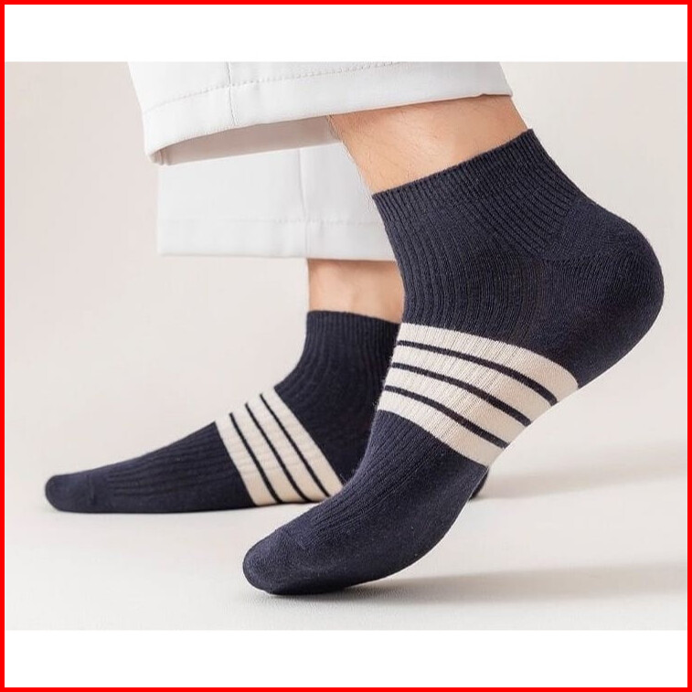 Fash120 Kaos Kaki Wanita Pria Motif Garis Fashion Korea Kaos Pendek Ankle Socks Import