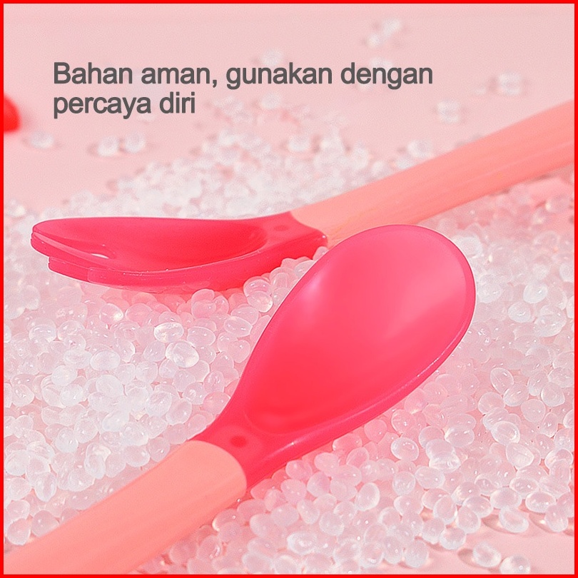 Hippo Land 1pcs Sendok Makan Bayi Silikon Sendok Dan Garpu Pengubah Suhu Bayi 26