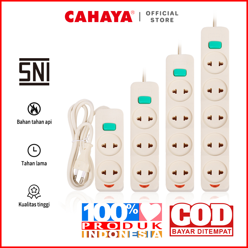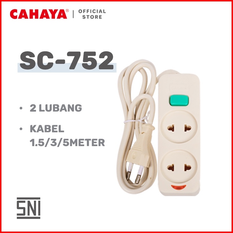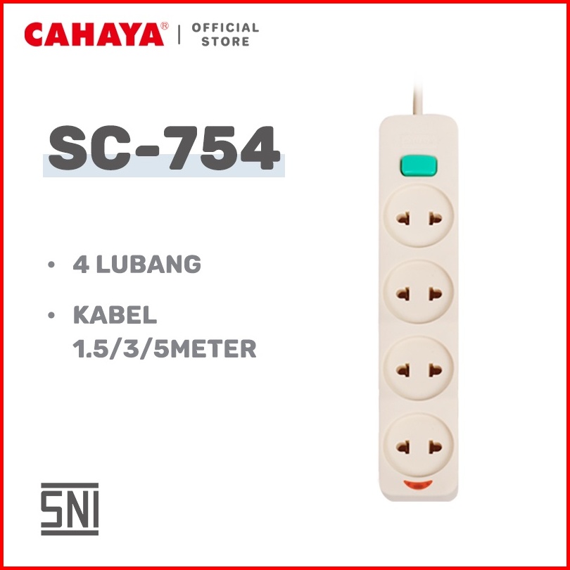 Cahaya - Stop Kontak Kabel 2 3 4 5 Lubang 1.5 3 5m Stop Kontak Gepeng Sni Sc-752 3 4 5