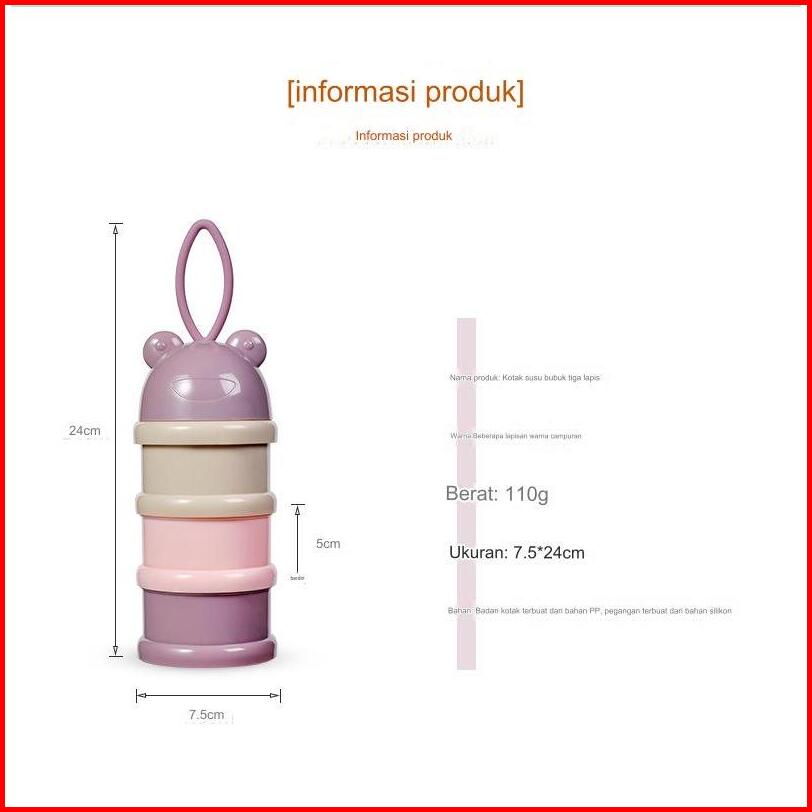 Hippo Land Wadah Tempat Susu Bubuk Bayi Travel 4tingkat Milk Powder Container Karakter Kotak Susu 49