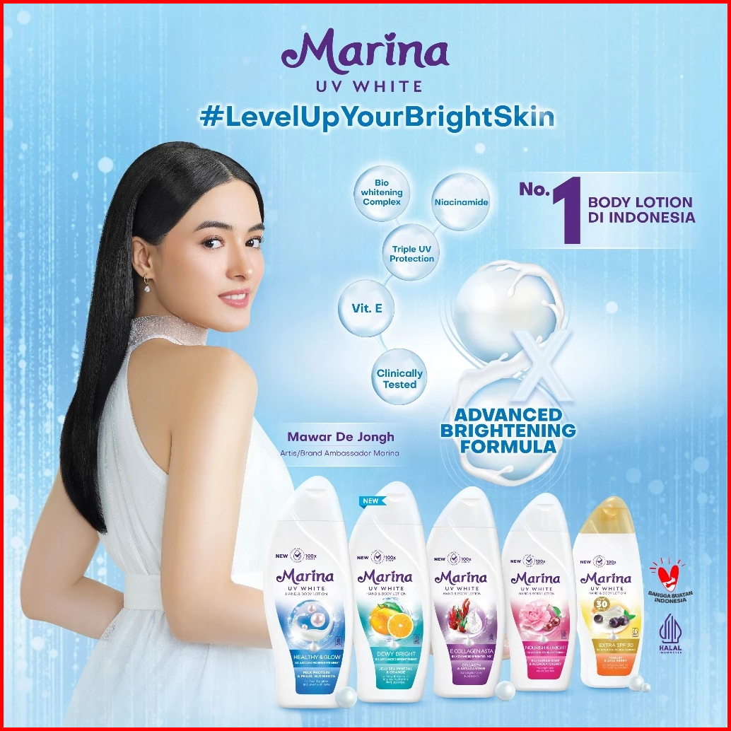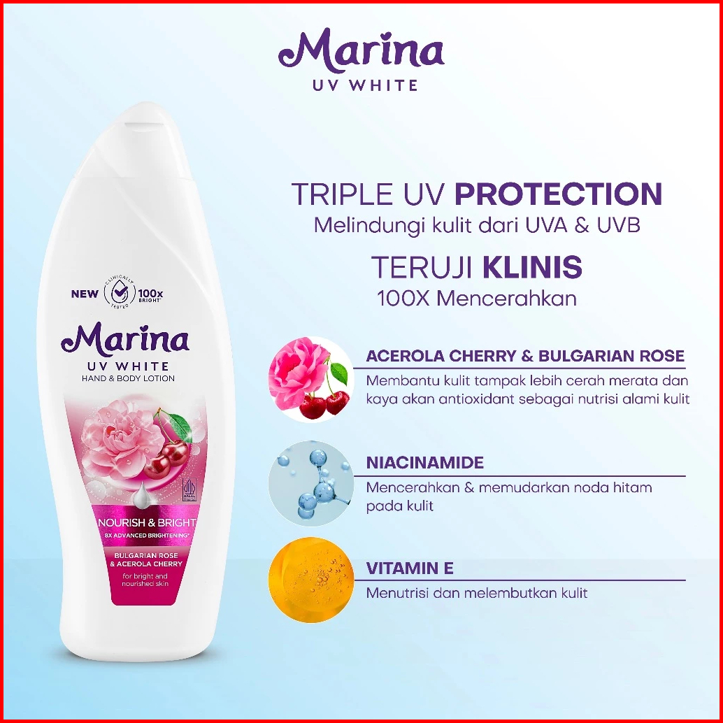 Marina Hand Body Lotion Uv White 185ml - Nourish Bright Healthy Glow Dewy Bright E Collagen Asta