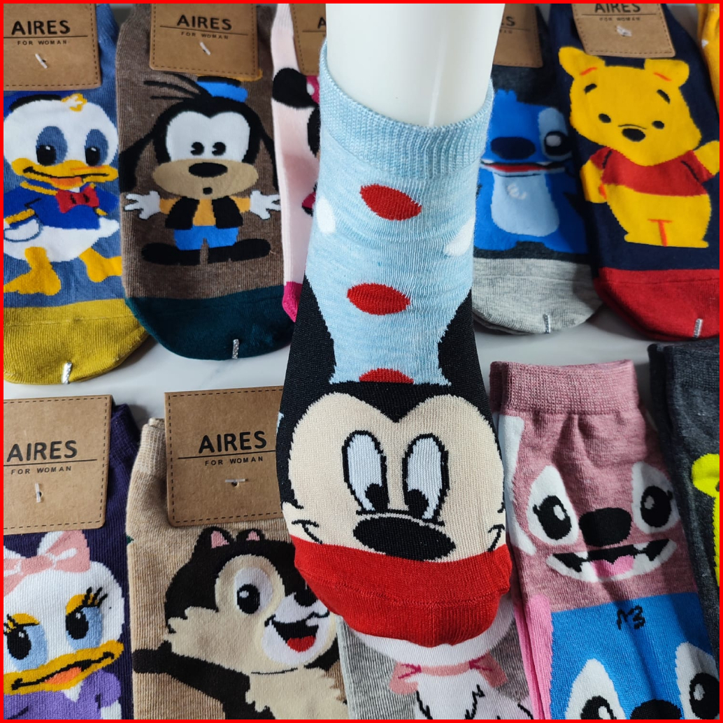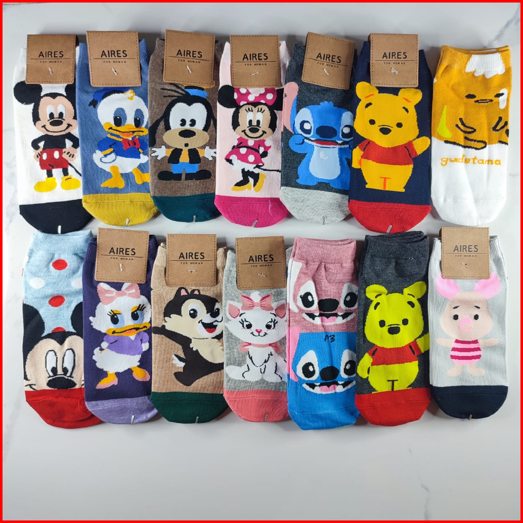 Kaos Kaki Wanita Karakter Disney Mickey Minnie Donald Pooh Stitch Japanese Brand