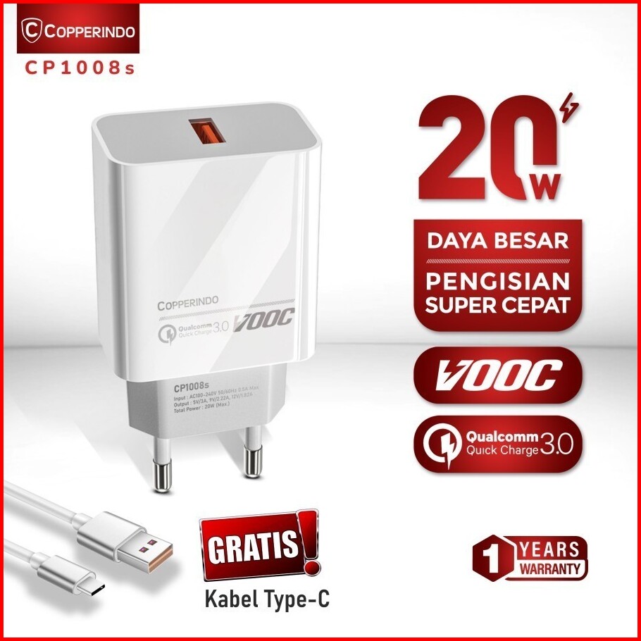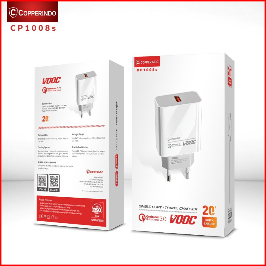 Copper Cp1008 Single Port Charger Up To 20watt Fast Charging Qc 3.0
