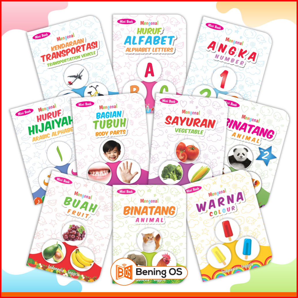 Mini Book Edukasi Anak Bayi Balita 0-5 Tahun Buku Belajar Bilingual Montessori Huruf Angka Binatang Dll