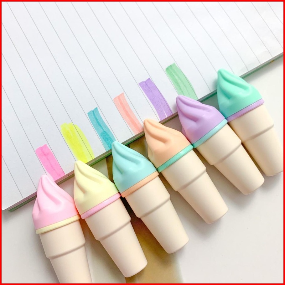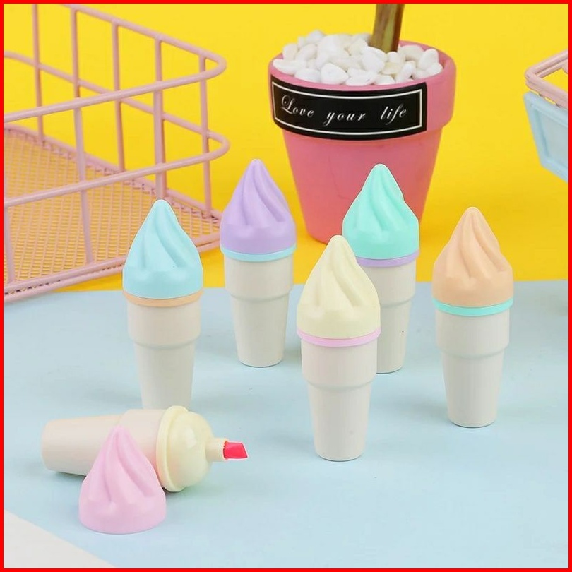 Hc Highlighter Es Krim Cone 1 Set 6 Pcs Free Pouch Highliter Es Krim Cone Stationery Lucu Unik Penanda Buku Warna Warni