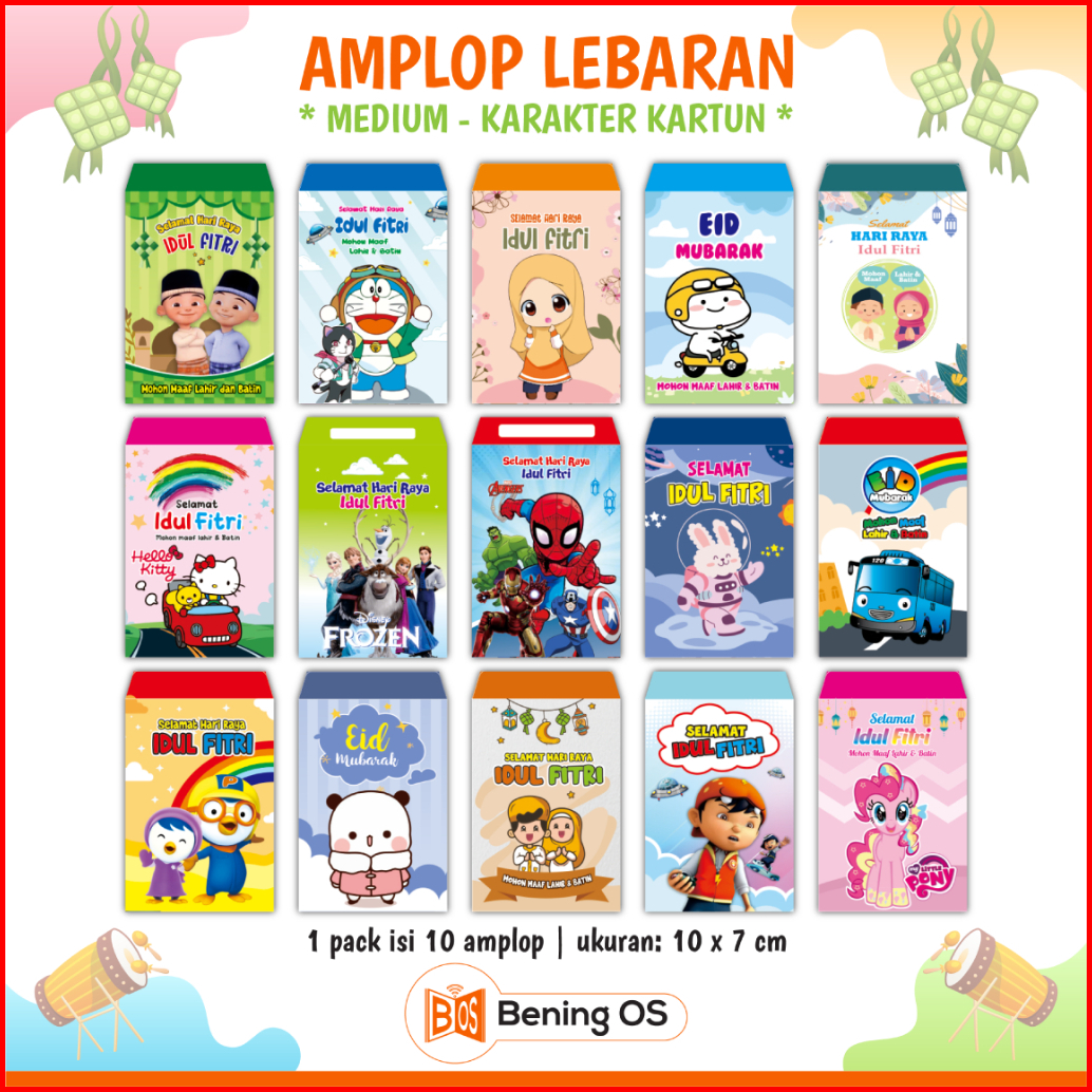 Isi 10 Pcs Amplop Lebaran Angpao - Medium Kartun