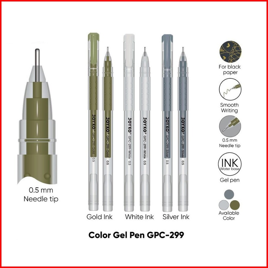 Joyko Color Gel Pen Gpc-299 Silver White Color Gel Pen Pulpen Bolpen Gel Pen Color 0.5mm Murah Berkualitas