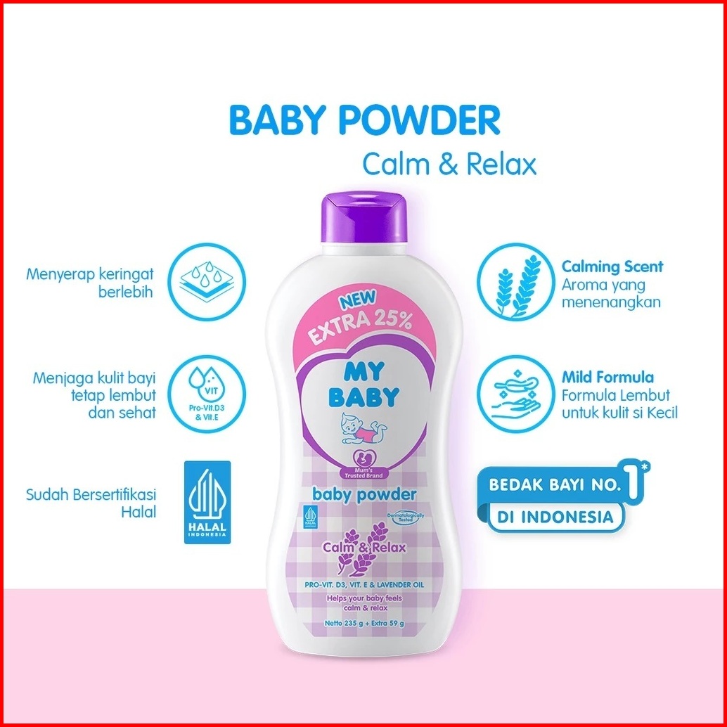 My Baby Powder 150gr 235gr 250gr 350g 450gr 500gr Bedak Bayi Dermatology Tested Powder Telon Plus Calm Relax