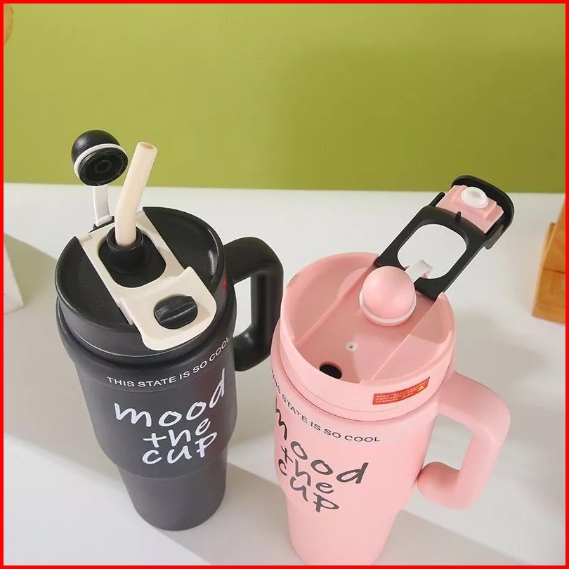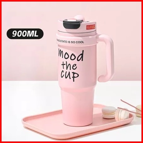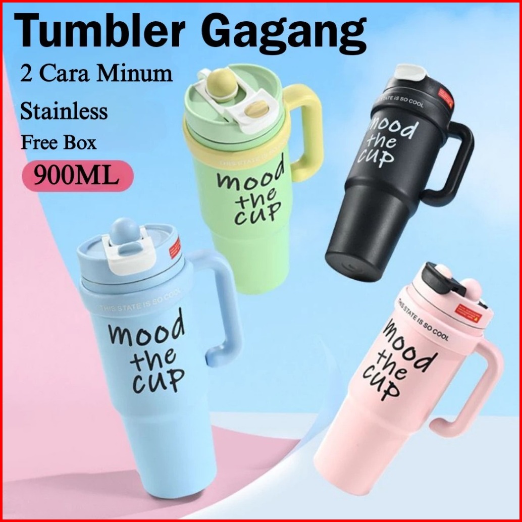 Mug Tumbler Stainless Steel 900ml Hot And Cold Anti Tumpah Free Sedotan Tumbler Gagang Jumbo 2 Cara Minum M 2015