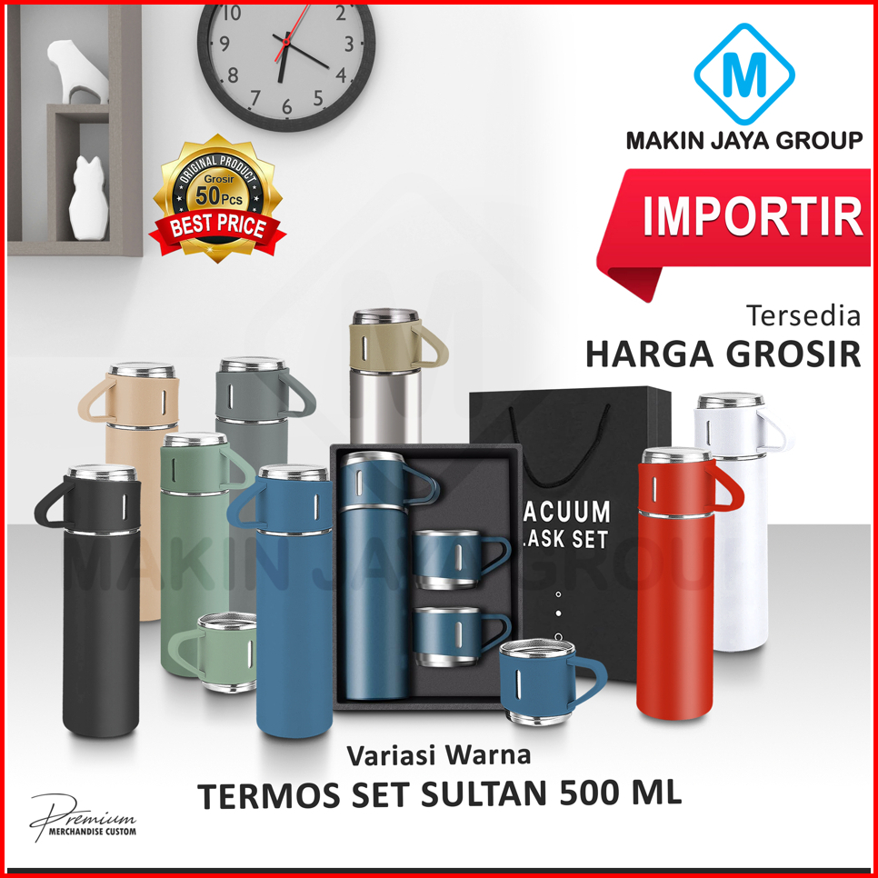 Termos Vacuum Flask Set Tumbler Botol Minum Cangkir Premium 500ml Termos Set Termos Sultan Gift Premium Bisa Custom Logo
