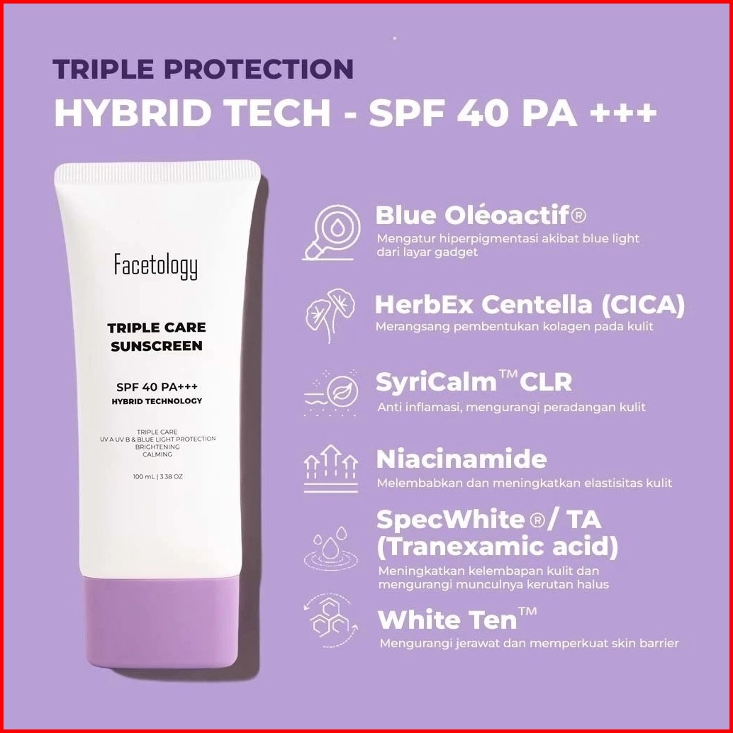 Facetology Triple Care Sunscreen Spf40 Pa 40ml Facetology Triple Care Sunscreen For Oily Acne Skin Spf40 Pa 40ml 100ml S
