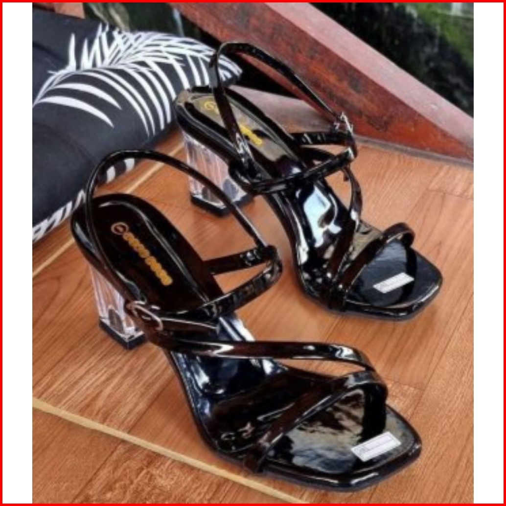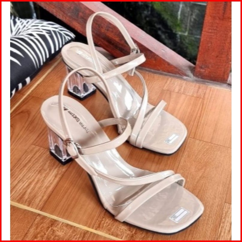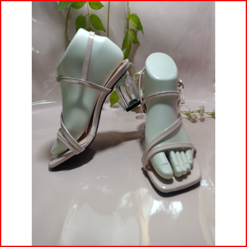 Sendal Wanita Heels Dns 13 Kaca Bening Tinggi 7cm