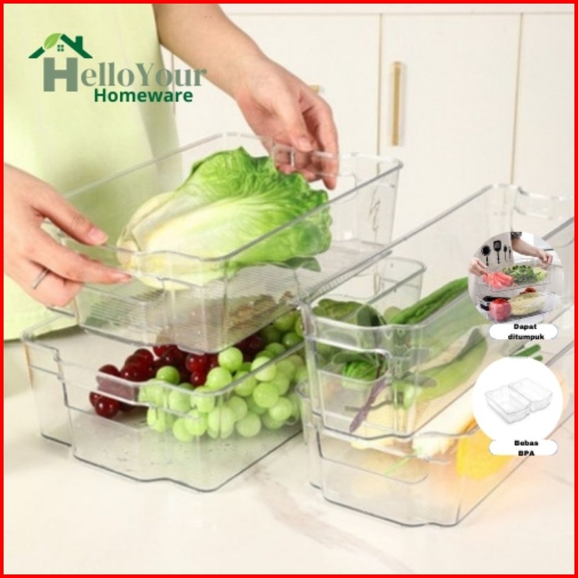 Tempat Kontainer Kulkas Transparan Wadah Penyimpanan Buah Sayur Snack Makanan Kulkas