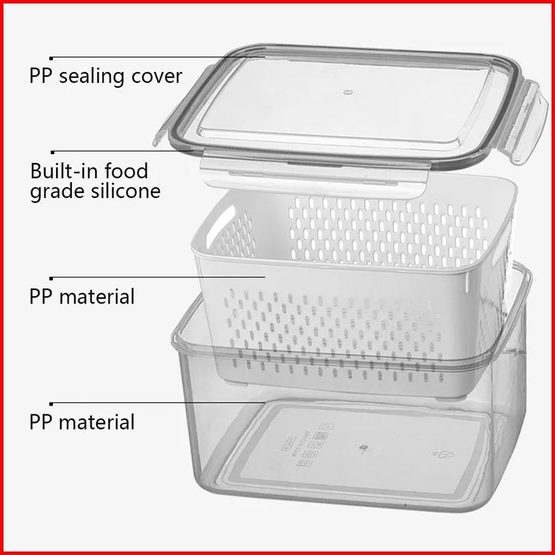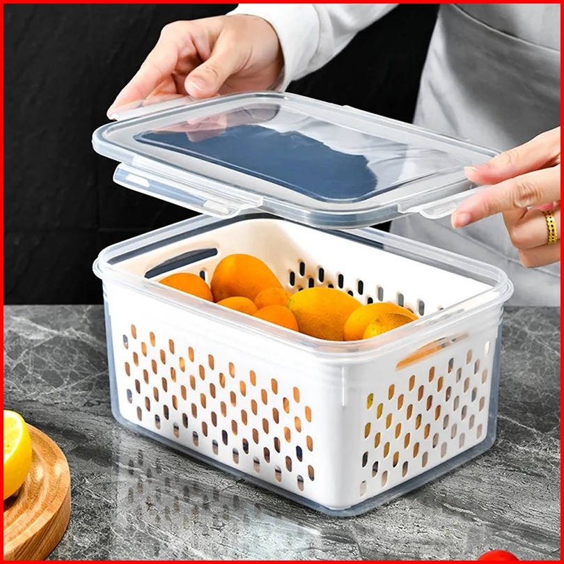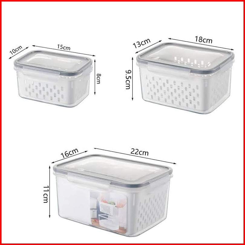 Wadah Set 3in1 Kotak Tempat Penyimpanan Buah Dan Sayur Container 3 In1 Container Dengan Penyaring
