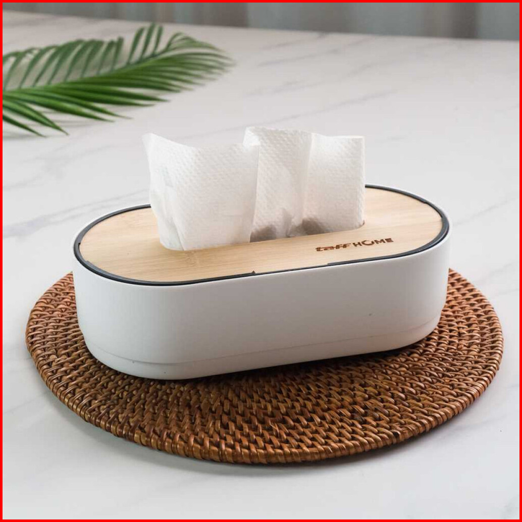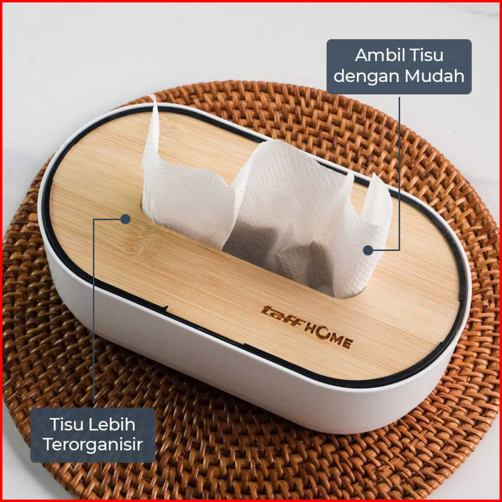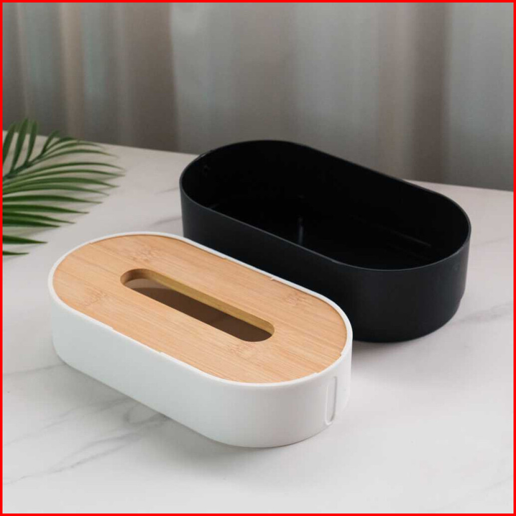 Taffhome Kotak Tisu Kayu Oval Lifting Tissue Box Storage 22x11.5x6cm - Ke21