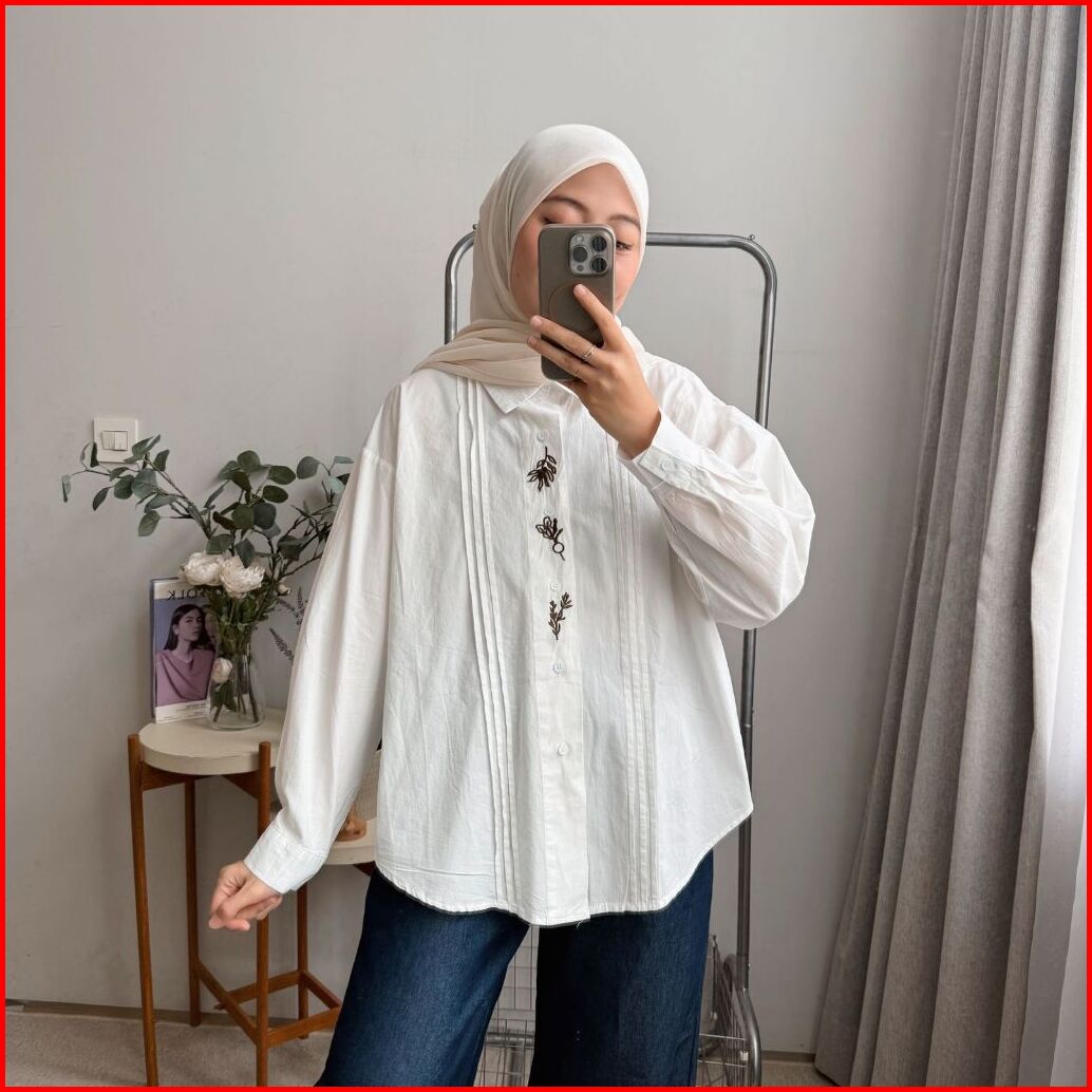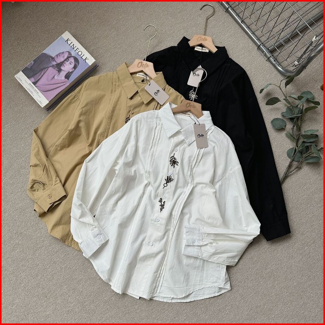 Oclo Basic Shirt Collection Katun Bordir Atasan Wanita Lengan Panjang Ocl02356