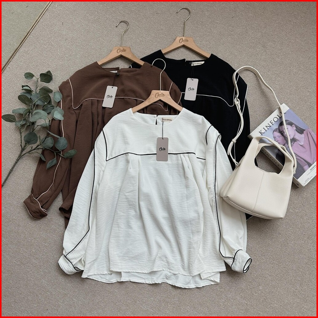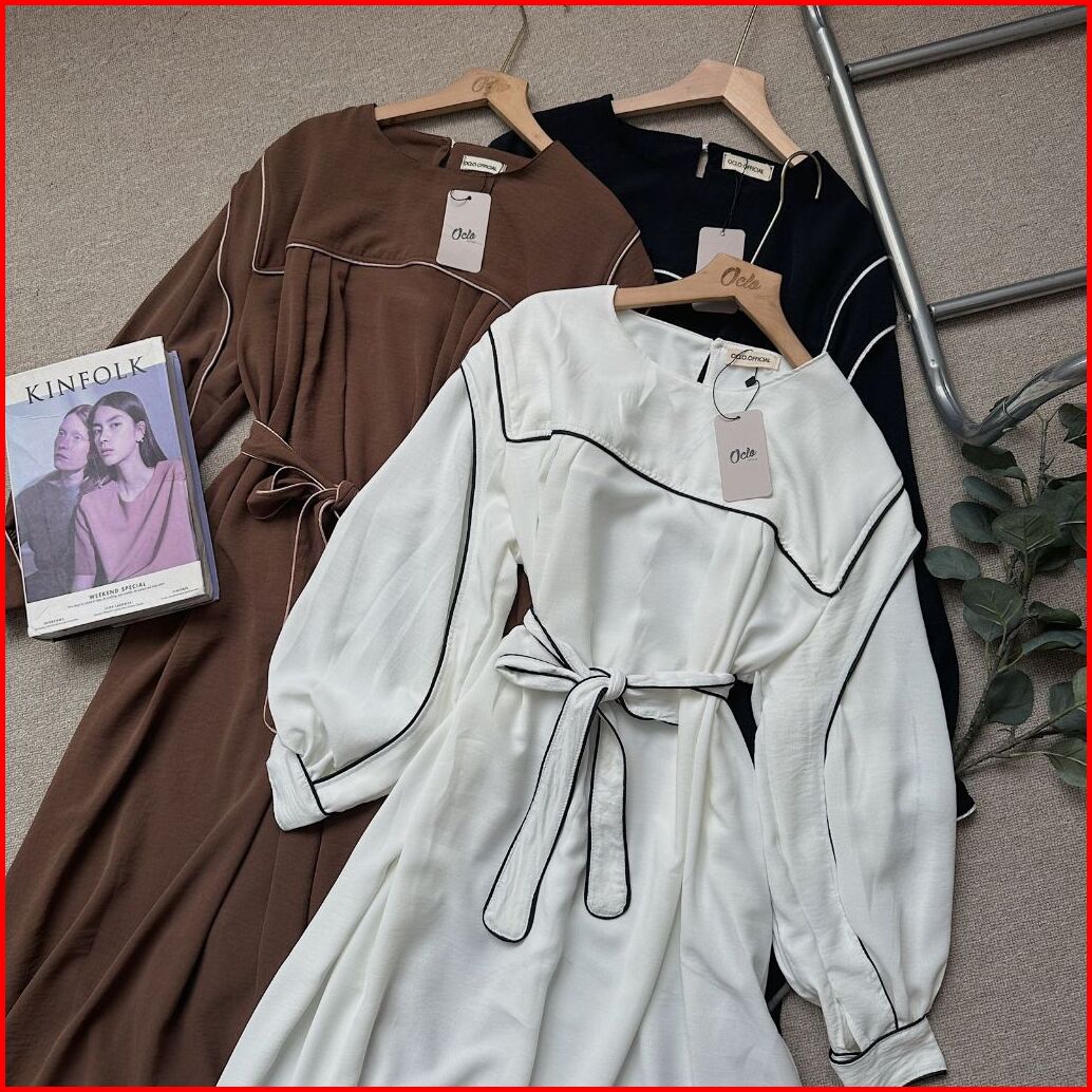 Oclo Nomita Dress Gamis Blouse Atasan Wanita Garis Cringkle Casual Basic Dailywear Ocl01092