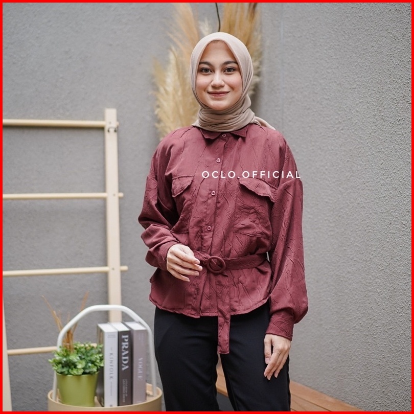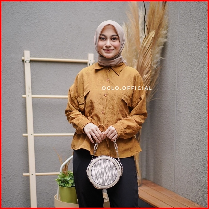 Oclo Crintella Shirt Casual Basic Atasan Kemeja Wanita Lengan Panjang Ocl00778