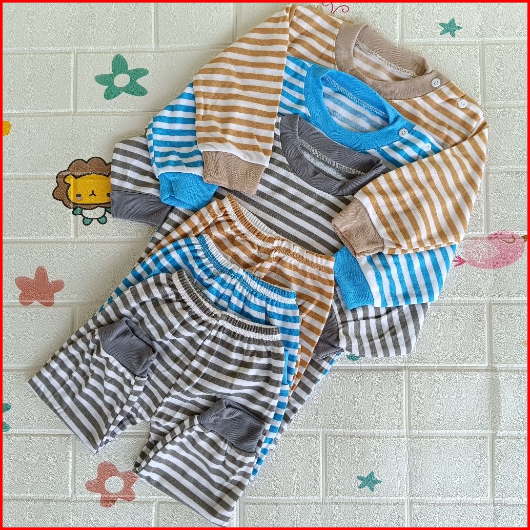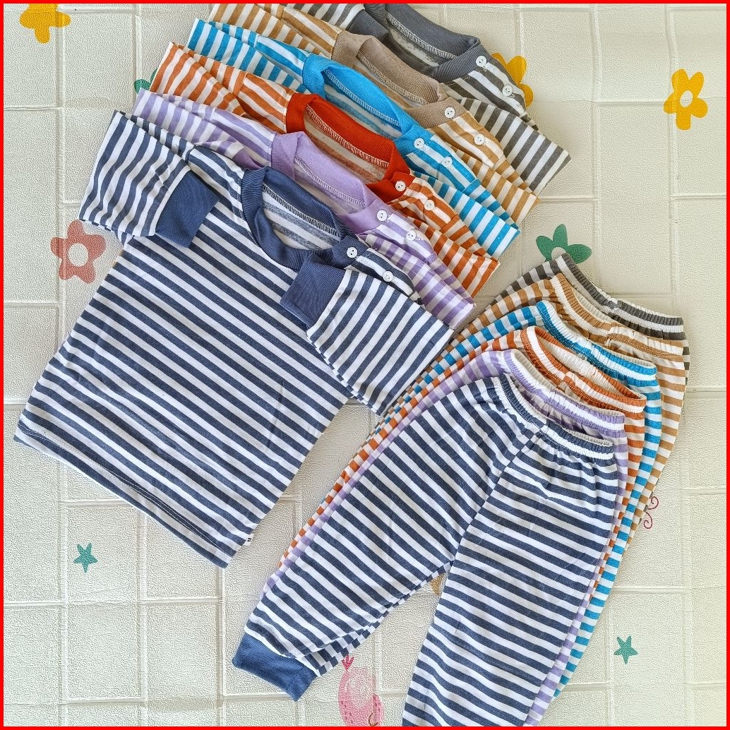 Promo Isi 6 Set Stelan Oblong Bayi Panjang Dan Celana Panjang Kaos Oblong Bayi Seri Salur Warna Kaos Oblong Kancing Bahu