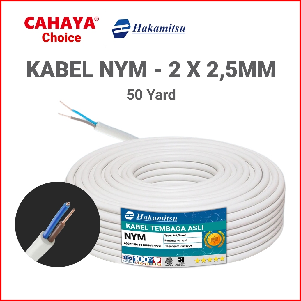Cahaya - Kabel Nym 2 X 2 5mm 50 Yard Full Kabel Listrik Tembaga Murni Pvc Sni Merek Hakamitsu Sudah Ber-sni
