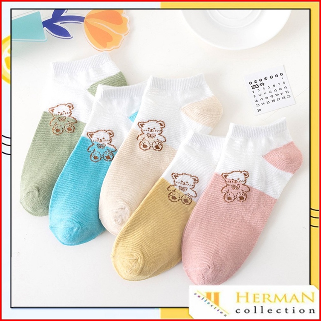 Hc Kaos Kaki Pria Wanita Kode 6903 Motif Boneka Beruang Kaus Kaki Pendek Semata Kaki Doll Bear Socks Korean Fashion