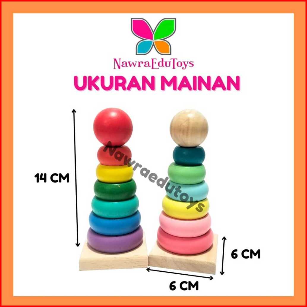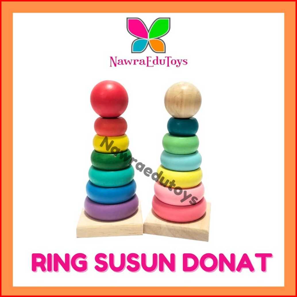 Mainan Bayi Anak Ring Susun Donat Kayu Rainbow Tower Wooden Kid Toys