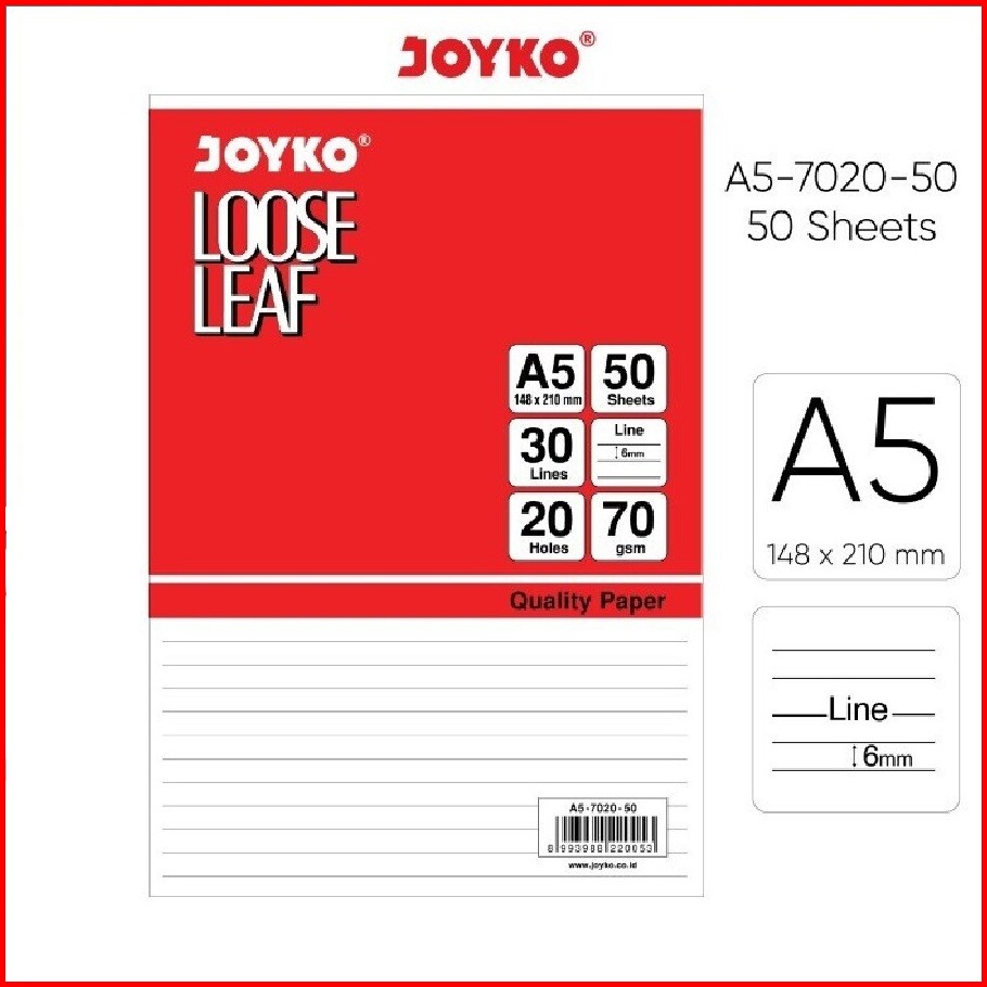 Joyko Loose Leaf A5-7020 50 Sheet Isi Kertas Binder File Joyko