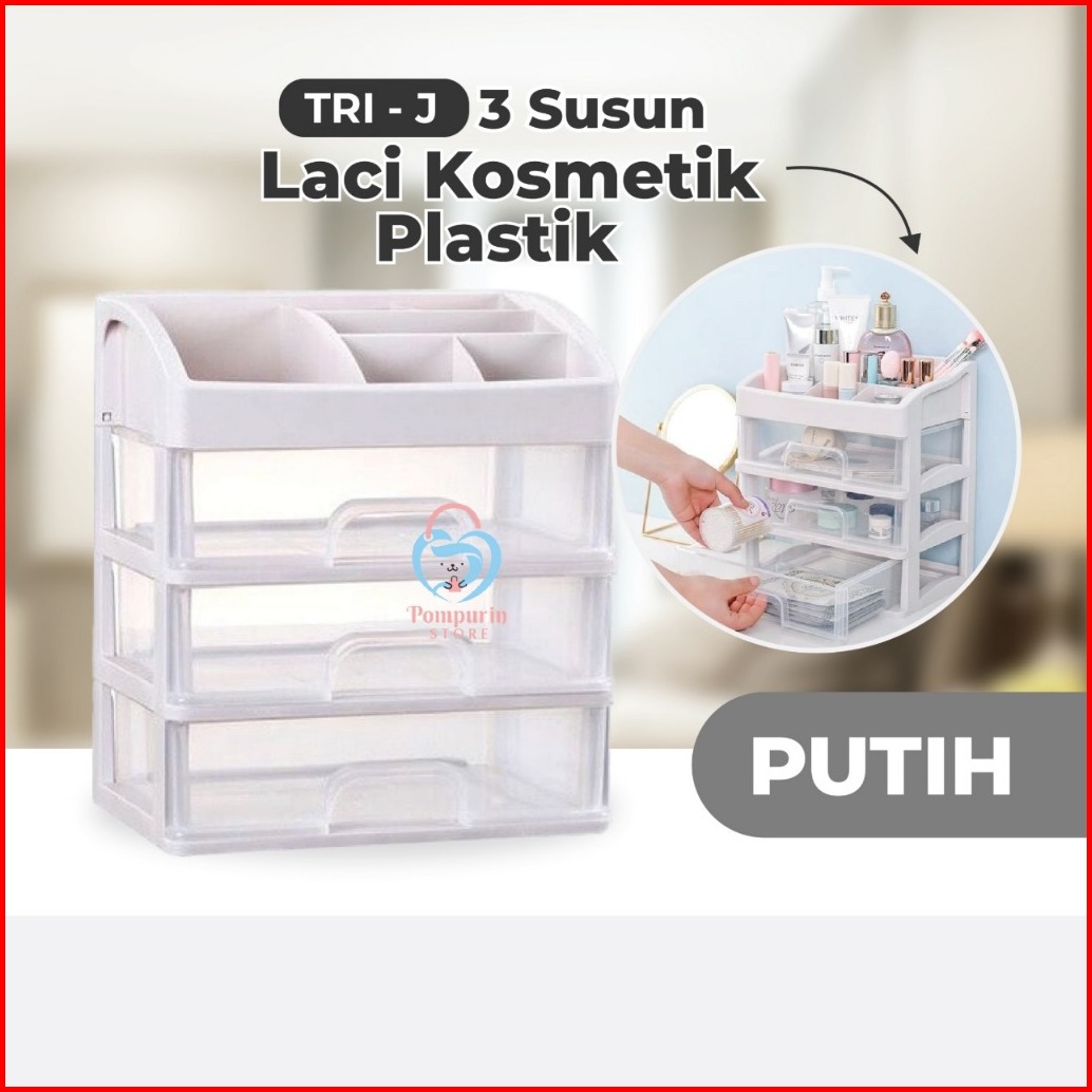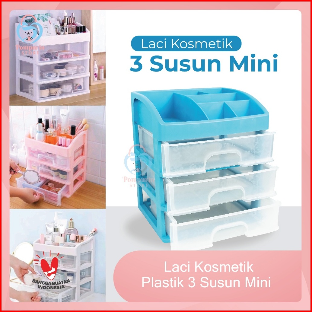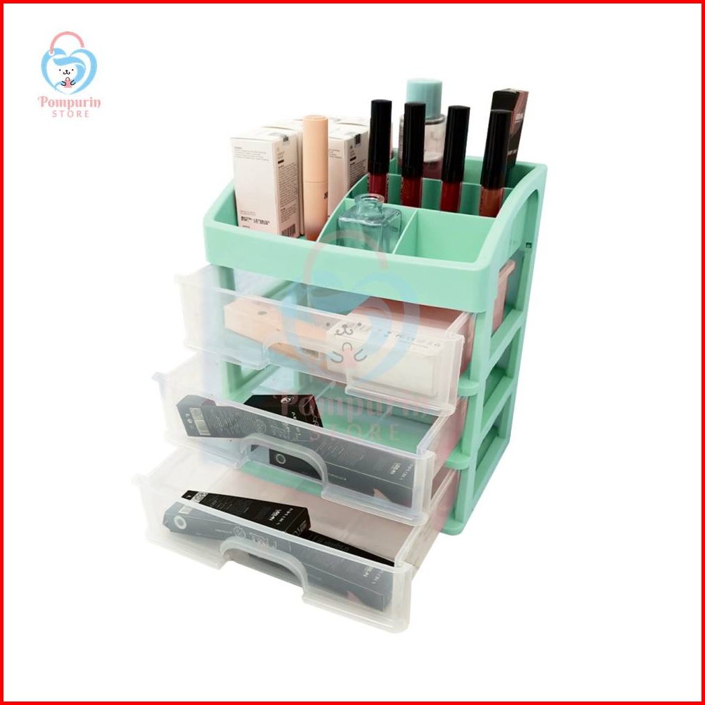3 Susun Rak Kosmetik Laci Kosmetik Plastik 3 Susun Mini - Rak Makeup Ukuran 18 X 15 X 22