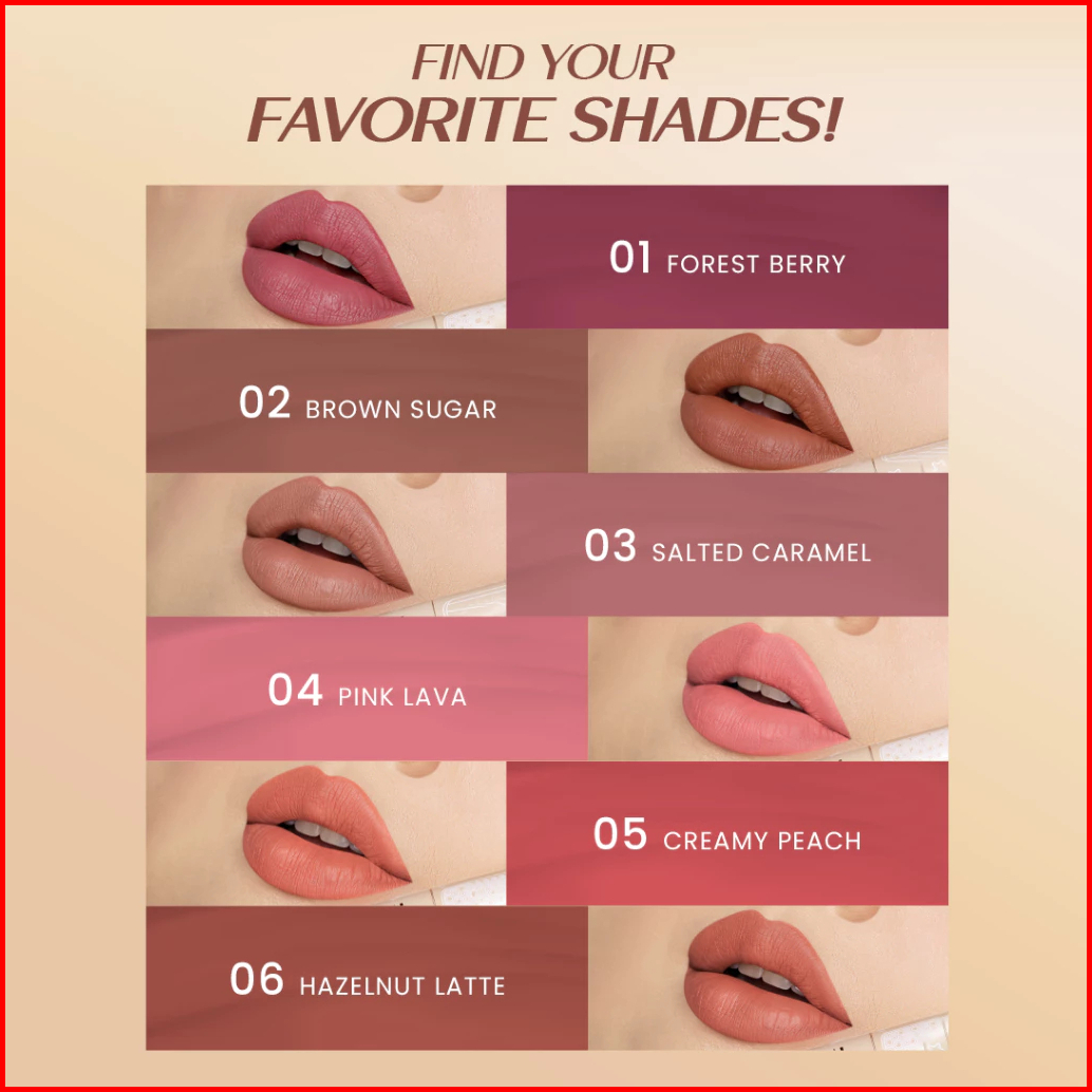 01 KISS, 02 POSH, 03 STAR, 04 CHIC, 05 CLASSY, 06 RITZ, 07 SPARK, 08 FANCY, 09 FAME, 10 ALLURE, 11 BRICK, 12 AMAZE, 13 ADORE, 14 DUSTY, 15 FLAME, 16 GLAM, BOBA 01 FOREST BERRY, BOBA 02 BROWN SUGAR, BOBA 03 SALTED CRML, BOBA 04 PINK LAVA, BOBA 05 CREAMY PEACH, BOBA 06 HAZELNUT, MATCHA 01 M.LICIOUS, MATCHA 02 M.MALLOW, MATCHA 03 M.CIANO, MATCHA 04 M.LOVER, MATCHA 05 M.BLEND, MATCHA 06 M.CHOCO