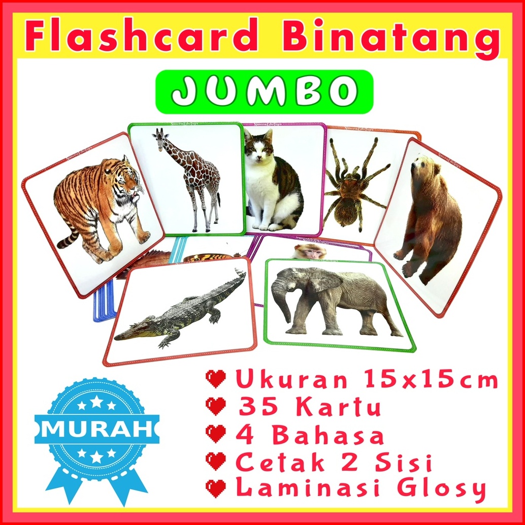 Flashcard Jumbo Binatang 4 Bahasa Ukuran Besar Kartu Pintar Belajar Hewan Fauna Jumbo Flash Card Animal