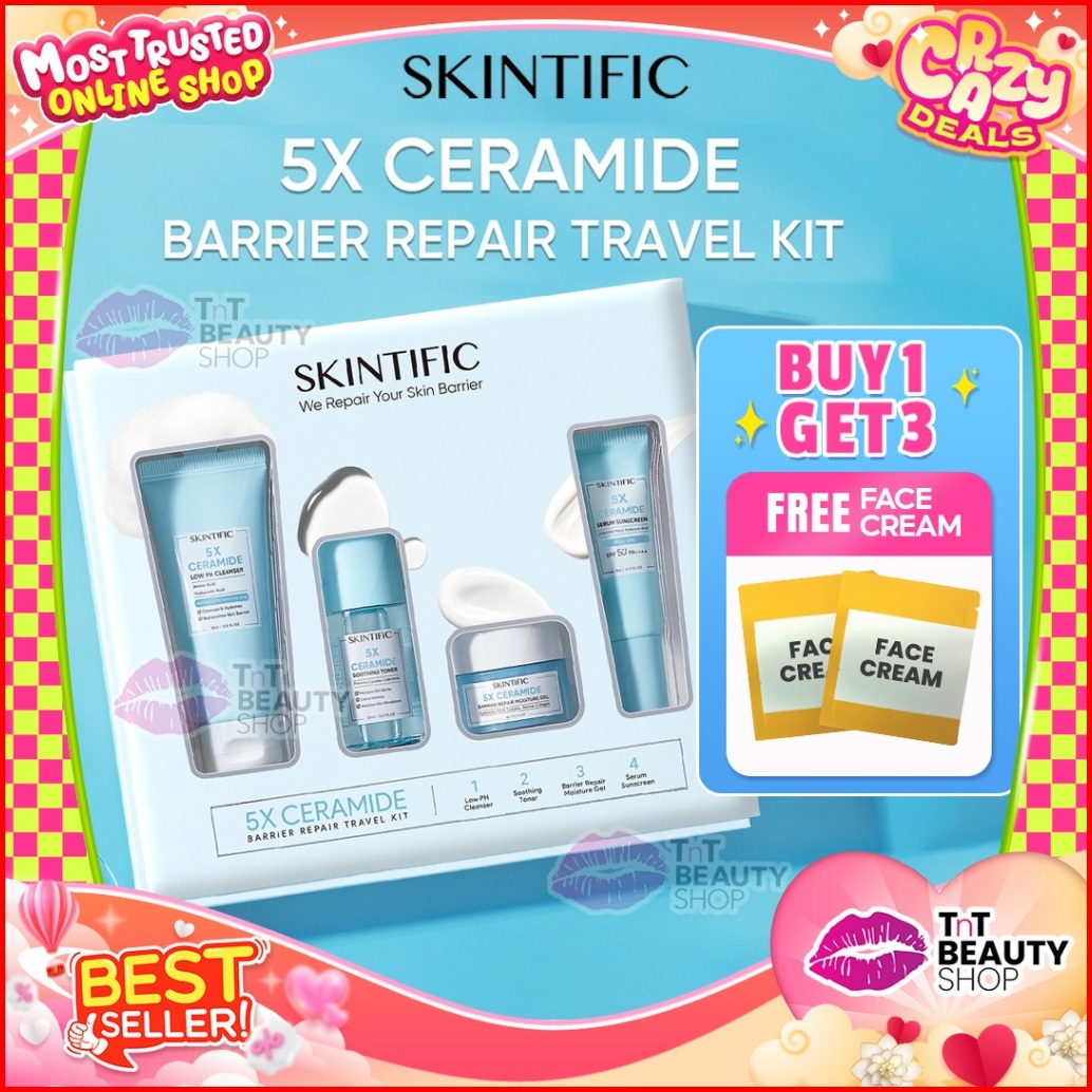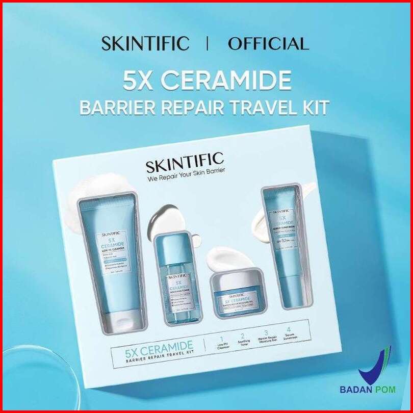 Skintific 5x Ceramide Barrier Repair Travel Kit - Skincare Paket Moisturizer - Cleanser - Soothing Toner - Serum Sunscre