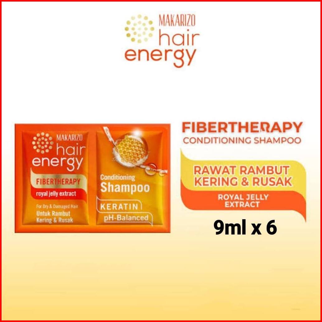 Paket Isi 6 Makarizo Hair Energy Fibertherapy Conditioning Shampoo 9ml Sachet - Royal Jelly Aloe Melon Citrus Tea Makari