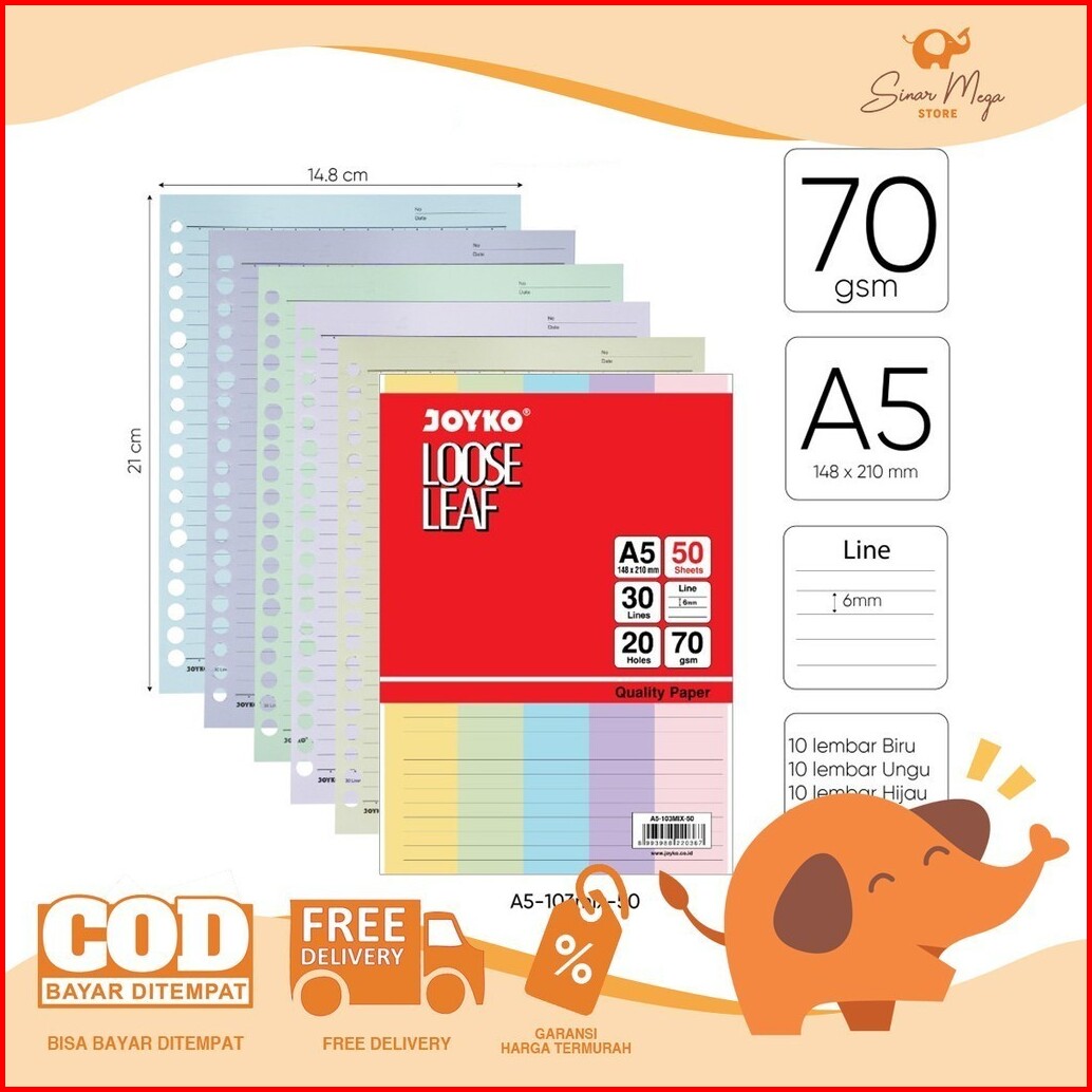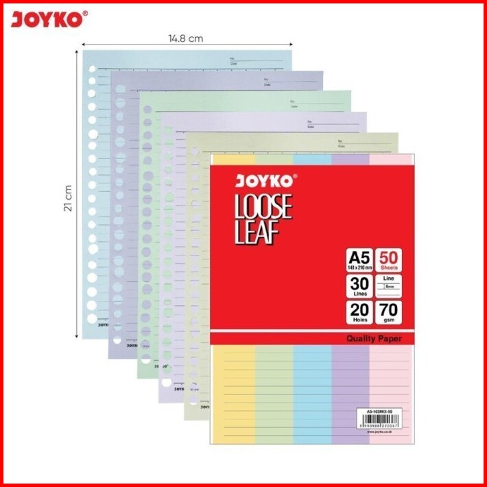 Joyko Loose Leaf Isi Ulang Refill Binder Paper A5 103mix 50 Lembar Colorful Rainbow Ruled Bergaris