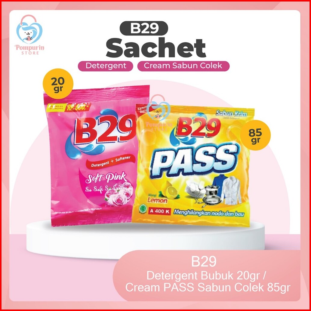 B29 Detergent Bubuk 20gr Sachet Renteng Soft Pink B29 Cream Pass Sabun Colek Kuning Sachet 85gr