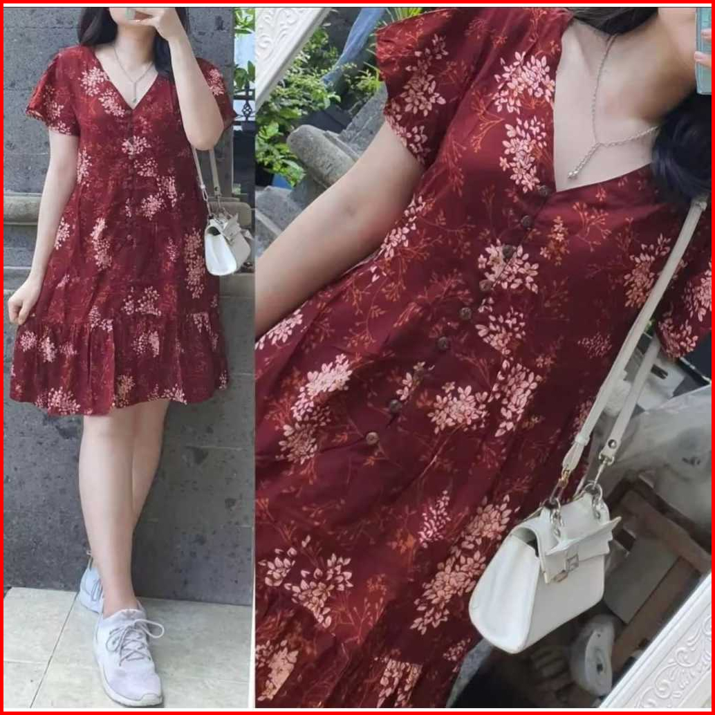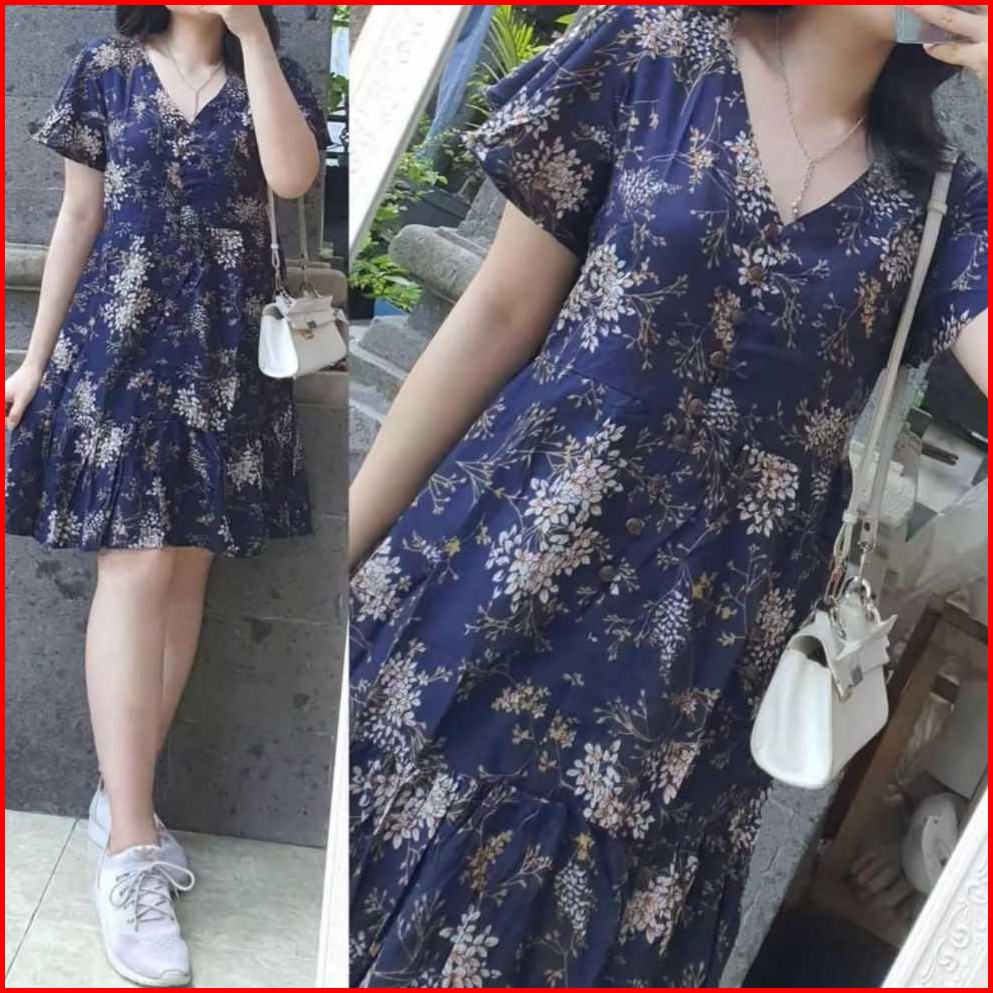 Dress Bunga Sakura Resleting Dada Daster Rumah Motif Bunga Kekinian Terbaru 2025