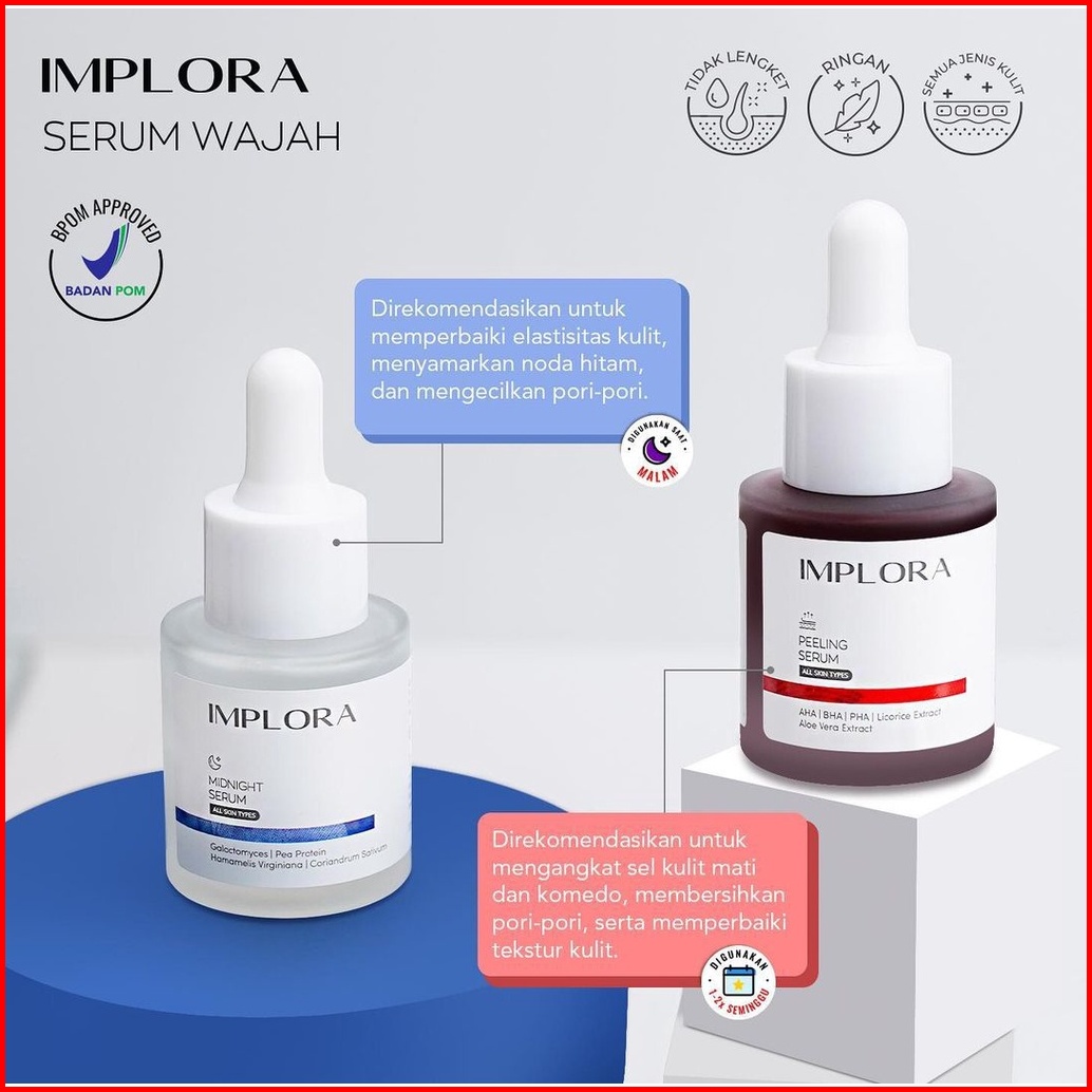 Implora Face Serum Serum Wajah Acne Brightening Peeling Midnight Serum Wajah Bpom 20ml