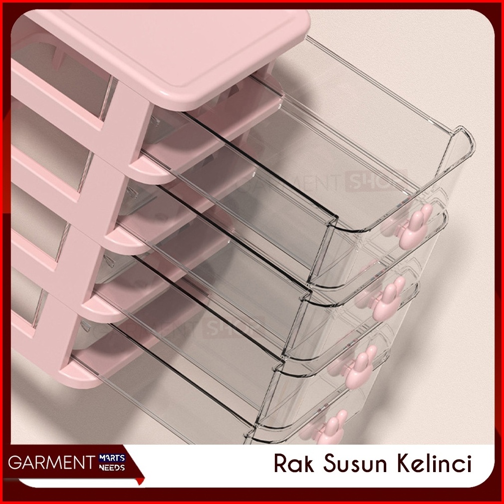 Klcilaci3 - Laci Mini 3 Tingkat Organizer Box Susun Tempat Alat Tulis Skincare Transparan Motif Rabbit Aesthetic