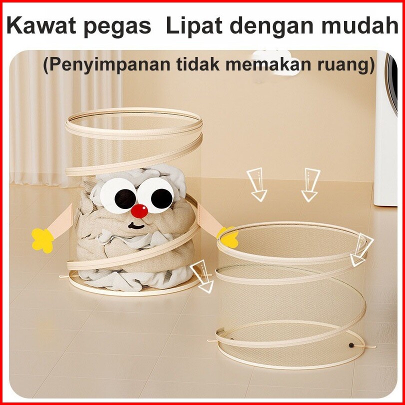 Laundry Bag Keranjang Baju Cucian Bulat Transparant Jaring Dengan Tutup Keranjang Pakaian Kotor Lipat Kamar Mandi Laundr