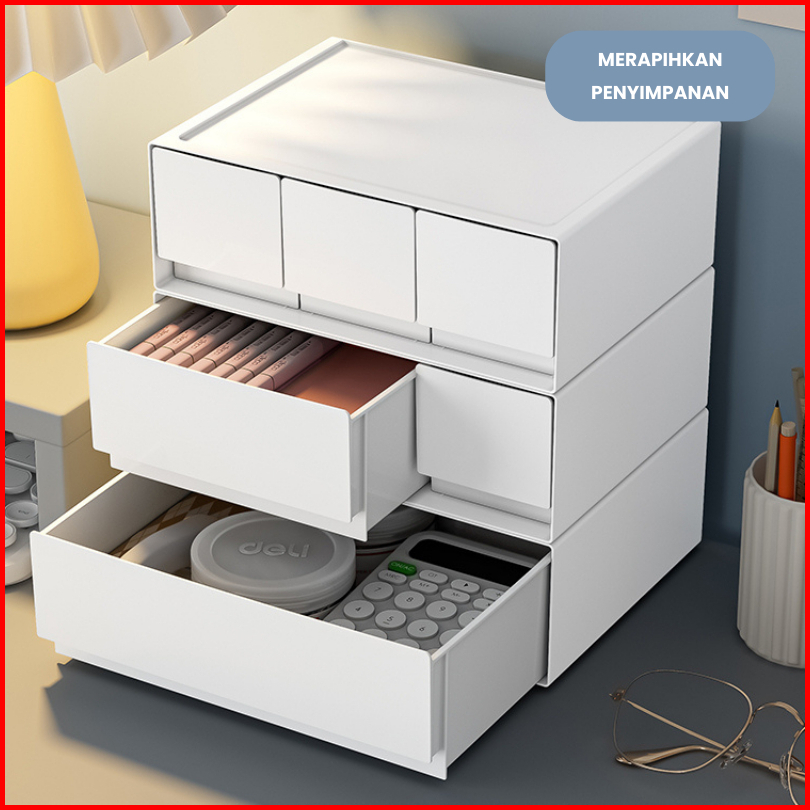Drawer Storage Serbaguna Laci Plastik Susun Mini Kotak Penyimpanan Alat Tulis Storage Kabinet Hsb734