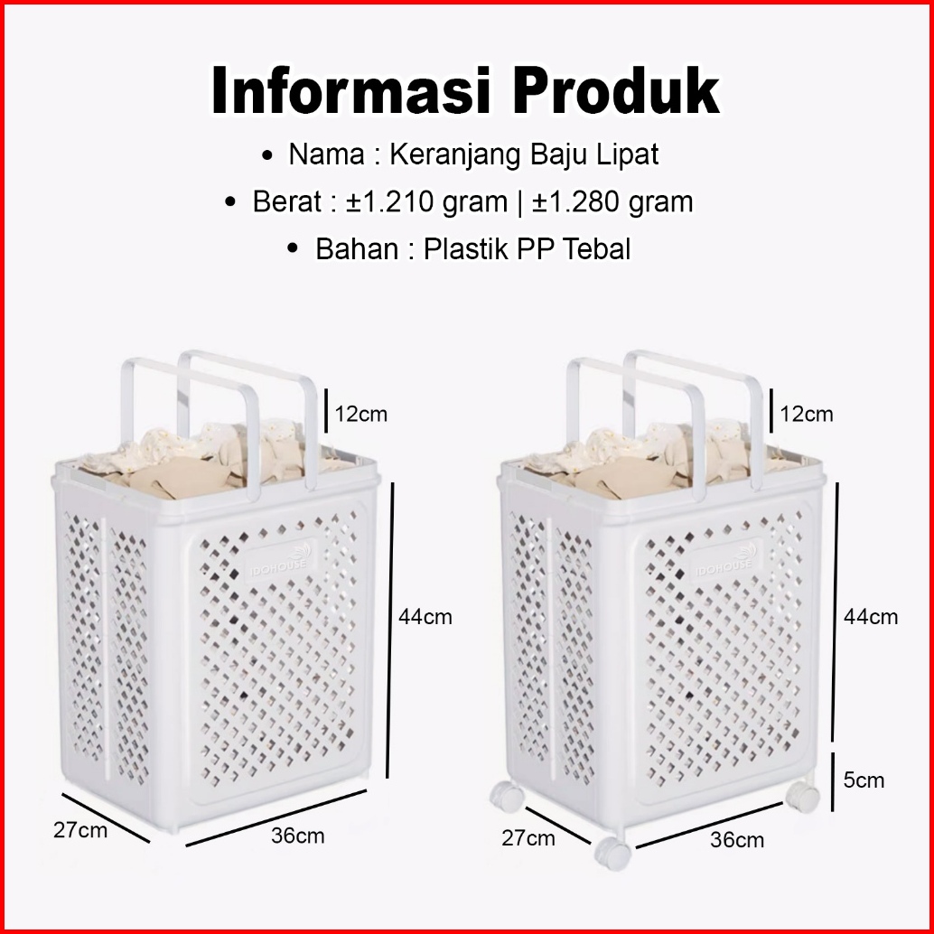 Bisacod - Laundry Basket Keranjang Lipat Pakaian Mainan Serbaguna Ber Roda Tempat Baju Kotor Plastik Aesthetic D01a