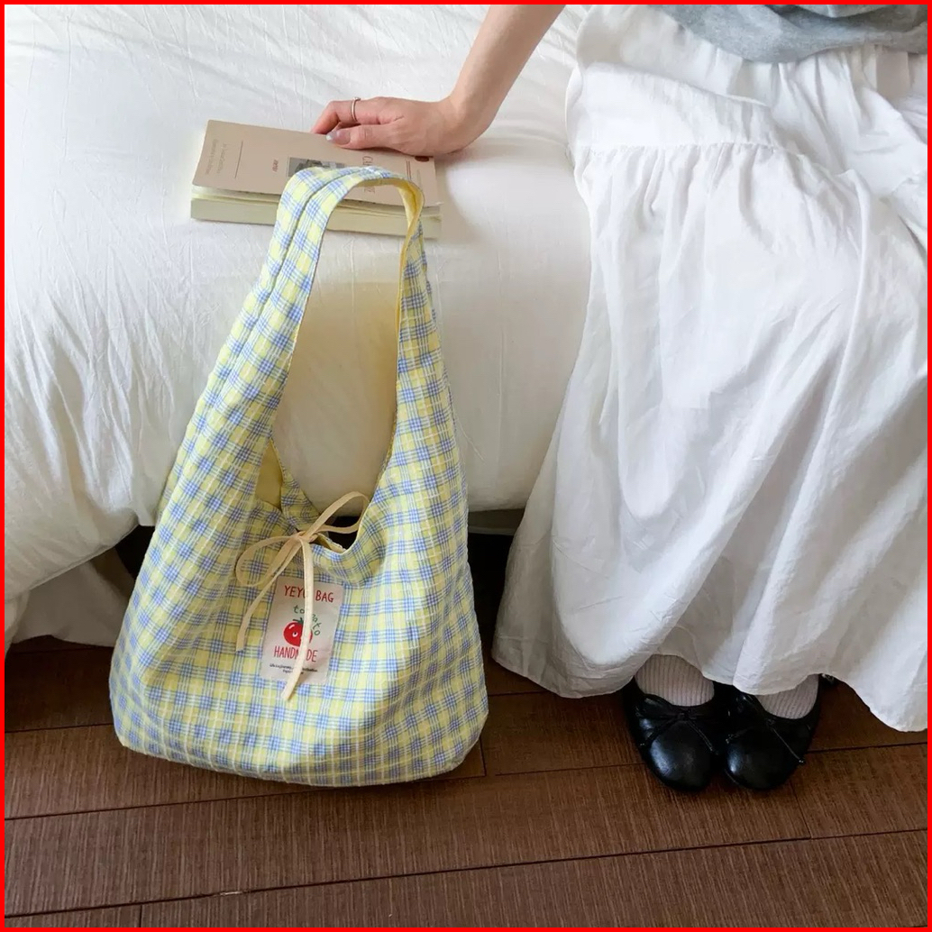 Tas Bahu Shoulder Bag Tote Bag Estetik Patch Berry Korean Look Shoulder Bag Kuliah Kerja Feminim Kain Kotak Kotak Korean