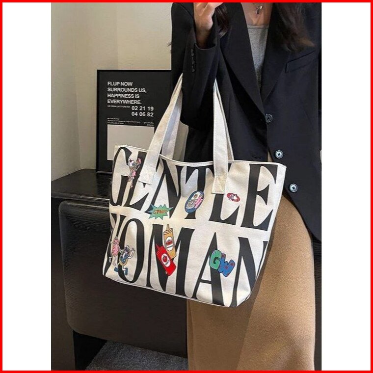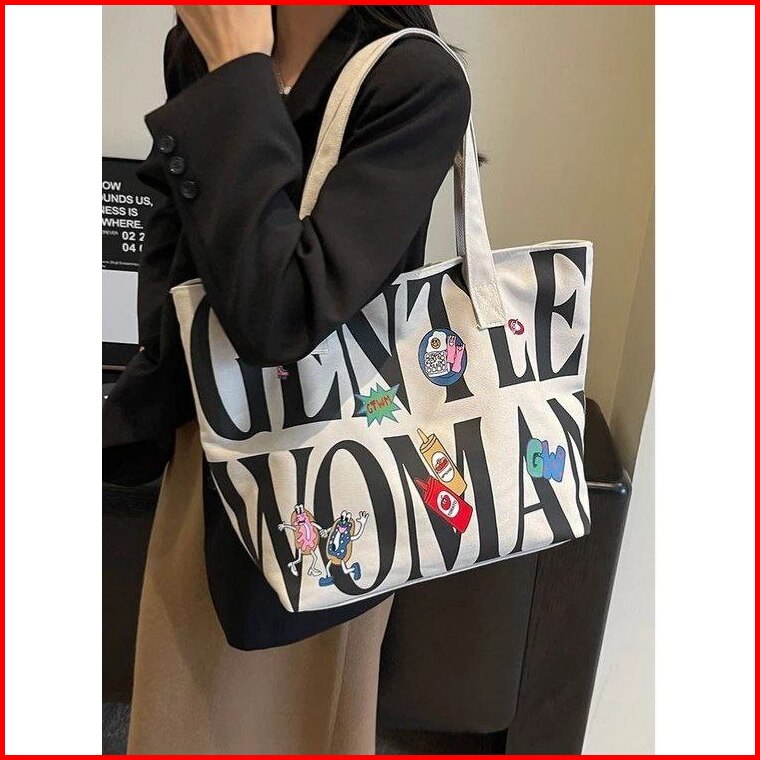 Priscilla Woment Tote Bag - Canvas Premium Tebal - Tote Bag Wanita - Tas Sekolah - Tas Kuliah - Muat Laptop 16 Inc