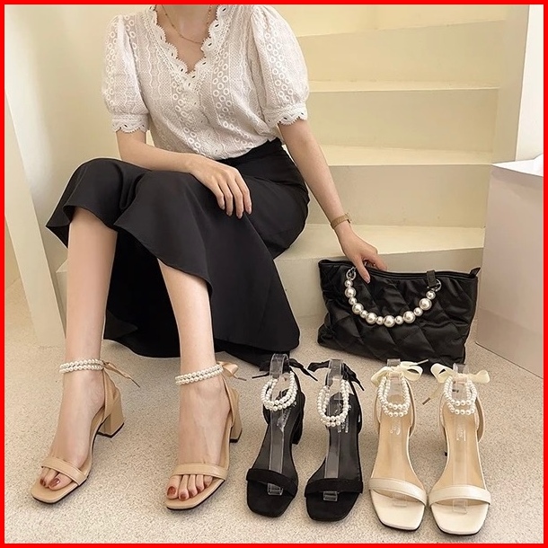 Heels Sandal Wanita Party Weding Mutiara Pearl