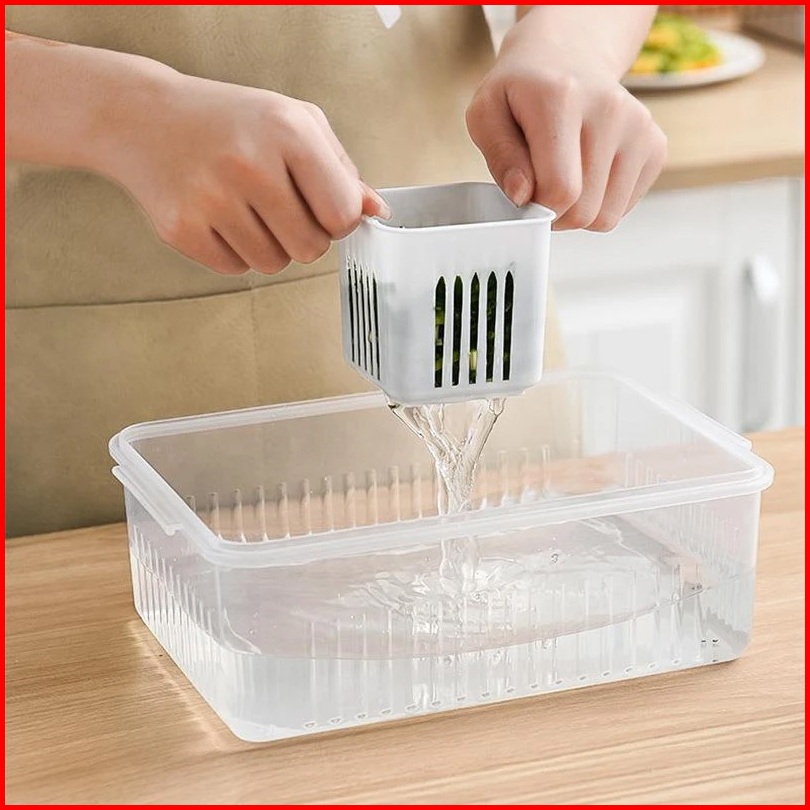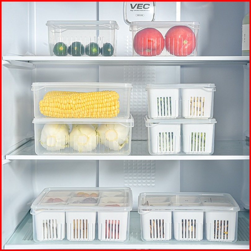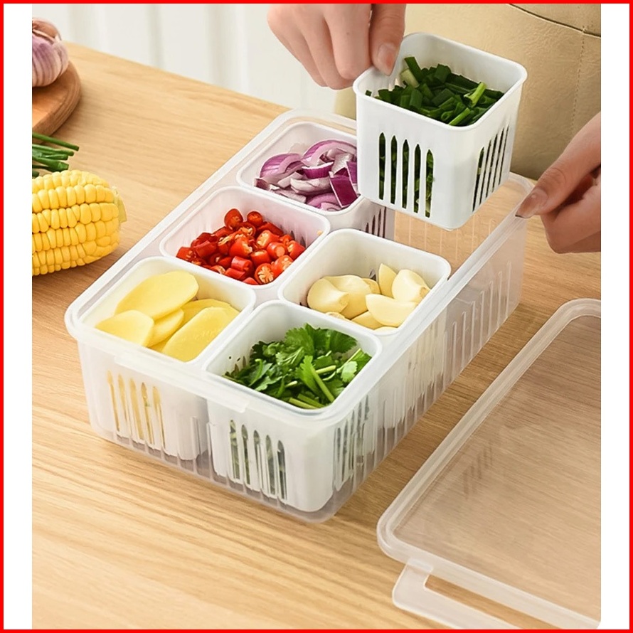 Kotak Kontainer Makanan Kulkas Sekat Tempat Buah Sayuran Dengan Penutup 6 Grid - Sw810 - White