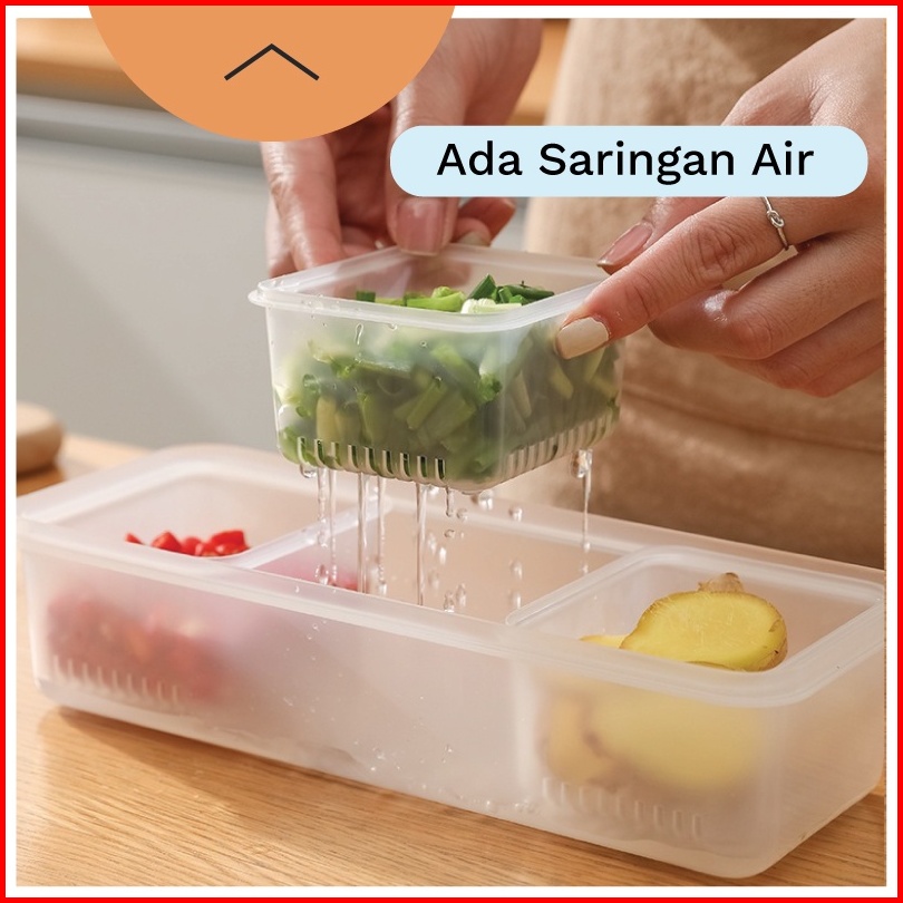 Tempat Kotak Sayur Saringan Serbaguna Kotak Penyimpanan Kulkas Storage Box Pengering Food Grade El Home