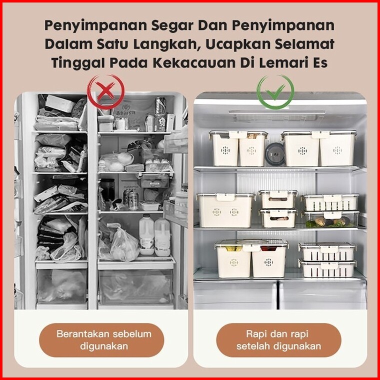 Aimilo - Food Container Kulkas Kedap Udara Kotak Penyimpanan Makanan Serbaguna Tempat Buah Bumbu Dapur Sayur Dengan Sari