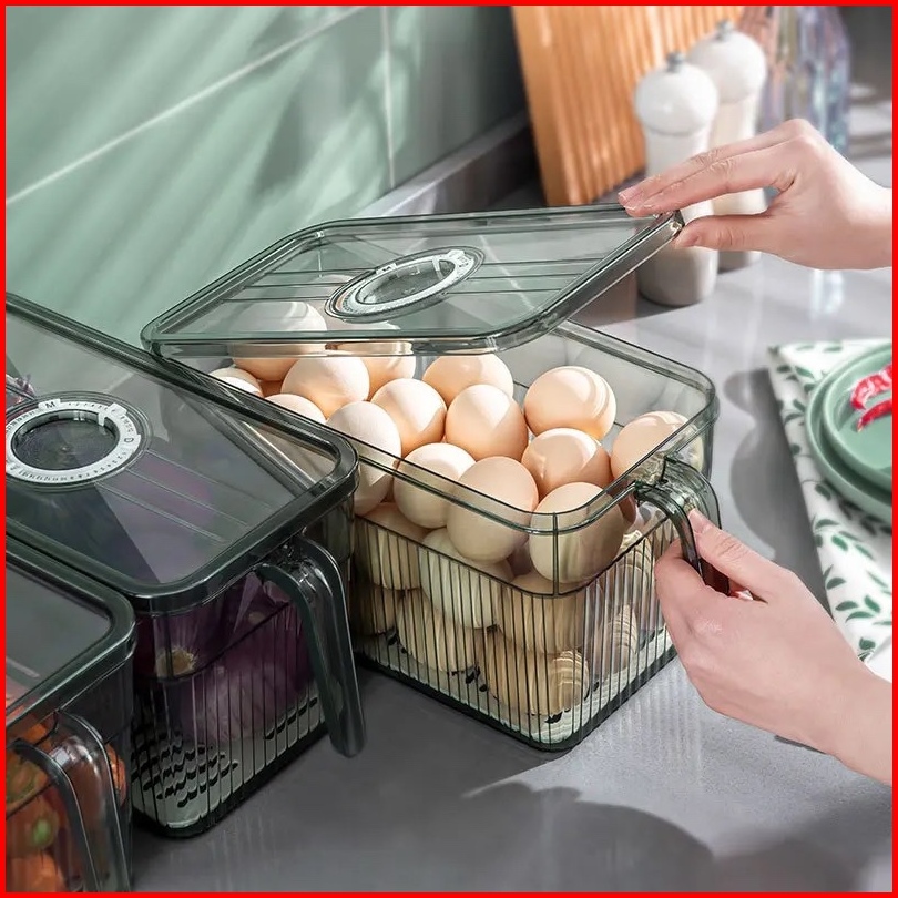 Antara - Kotak Penyimpanan Kulkas Container Trasnparan Acrylic Food Storage Besar Toples Kulkas Sayuran Dengan Pegangan
