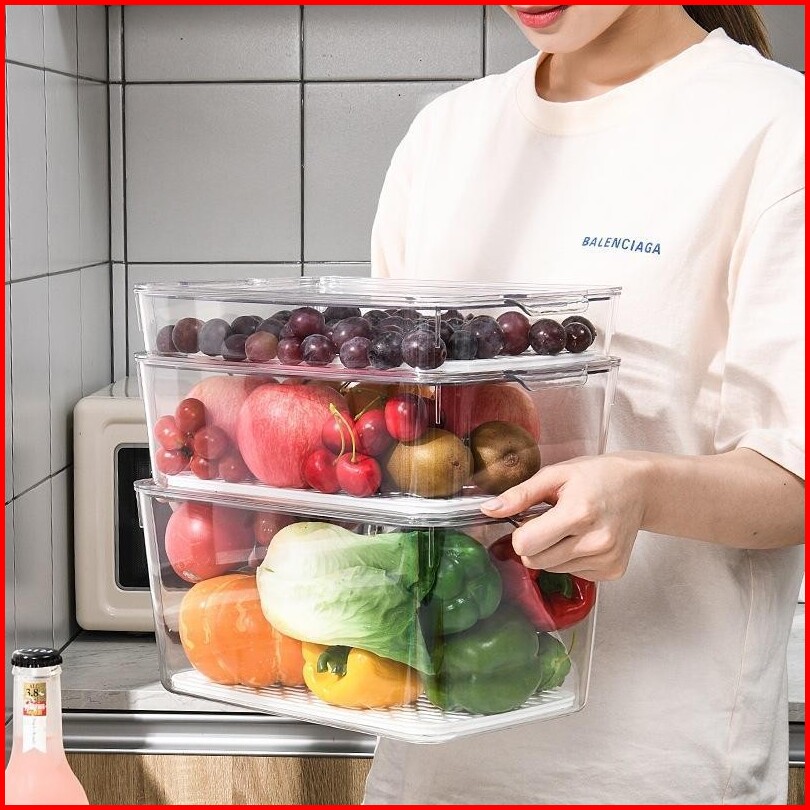 Bss Wadah Penyimpanan Makanan Kotak Pendingin Kedap Udara Untuk Buah-buahan Dan Sayuran Segar Dengan Pegangan Plastik Pu