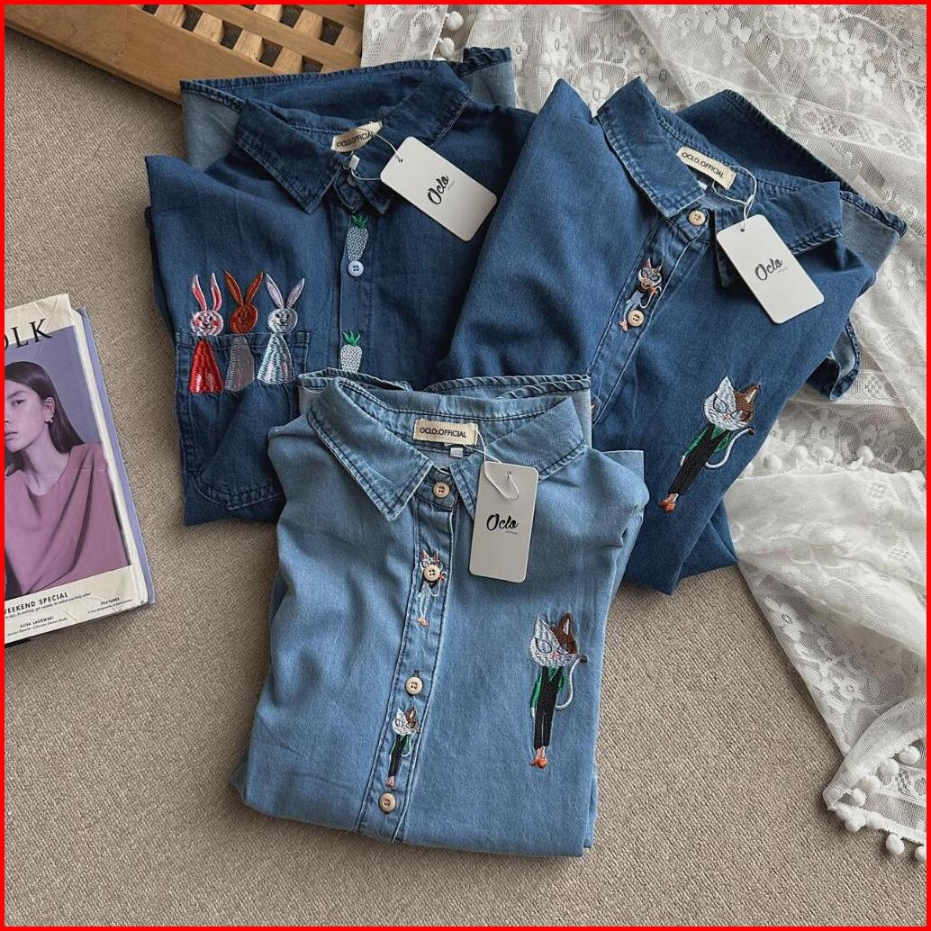Oclo Alia Shirt Jeans Premium Casual Basic Dailywear Kemeja Wanita Stylish Ocl02212