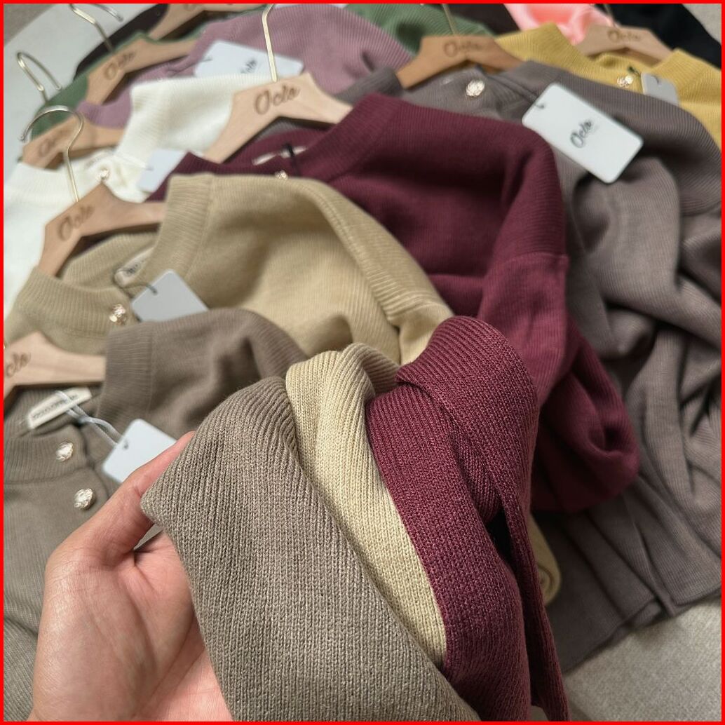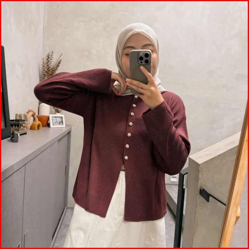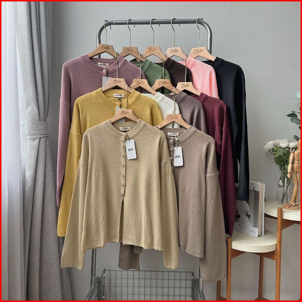 Oclo Ranfa Blouse Atasan Wanita Rajut Kancing Bunga Lengan Panjang Basic Casual Daily Wear Ocl02070